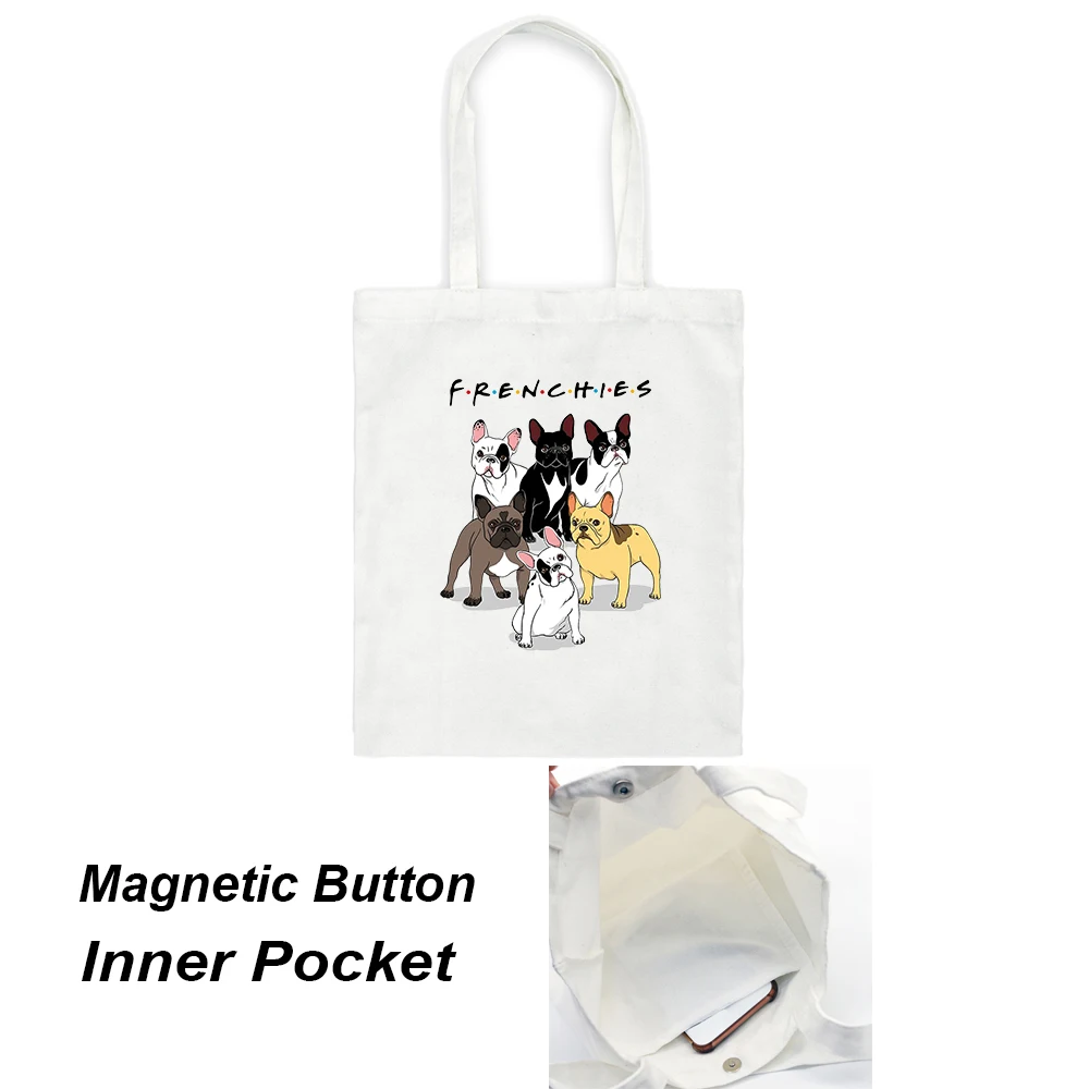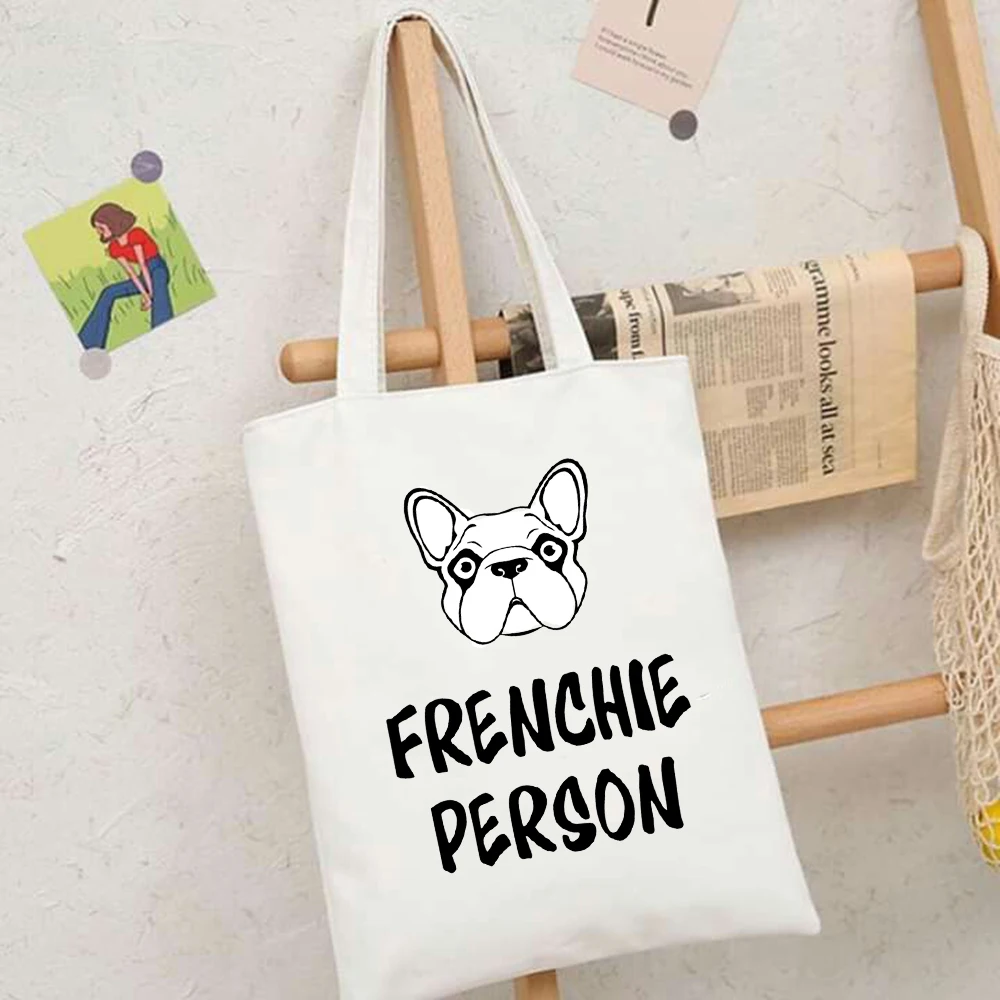 Сумка на плечо с принтом французского бульдога, Модный повседневный экологически чистый тоут в стиле Харадзюку, многоразовые мешки для покупок, вместительные сумки для хранения