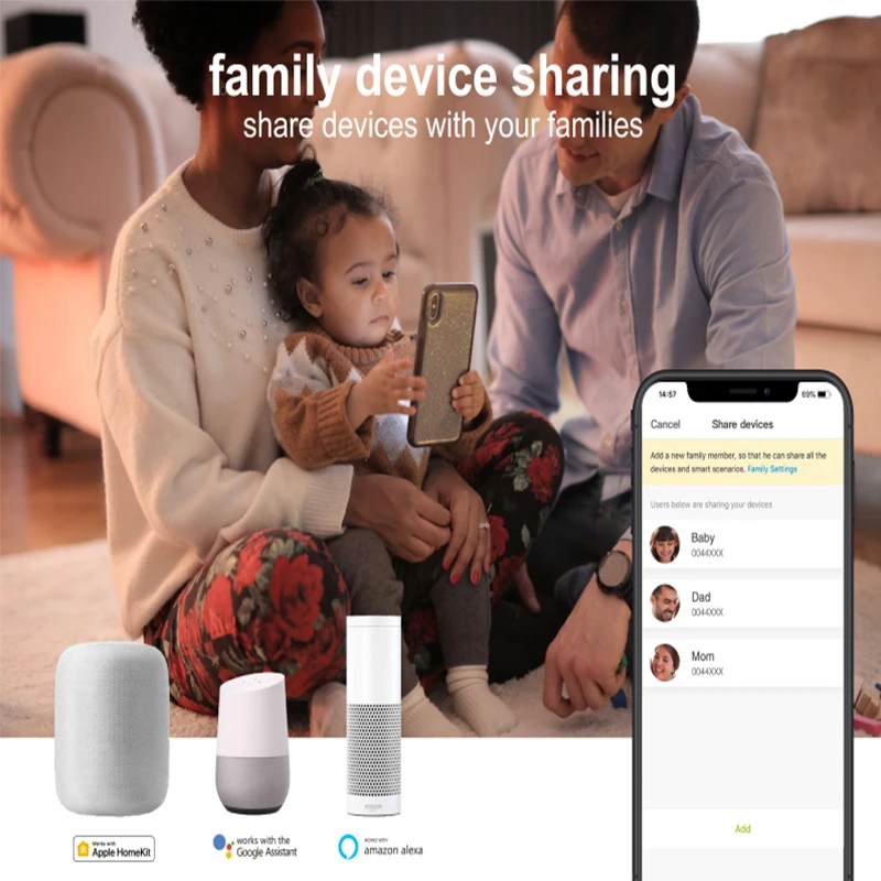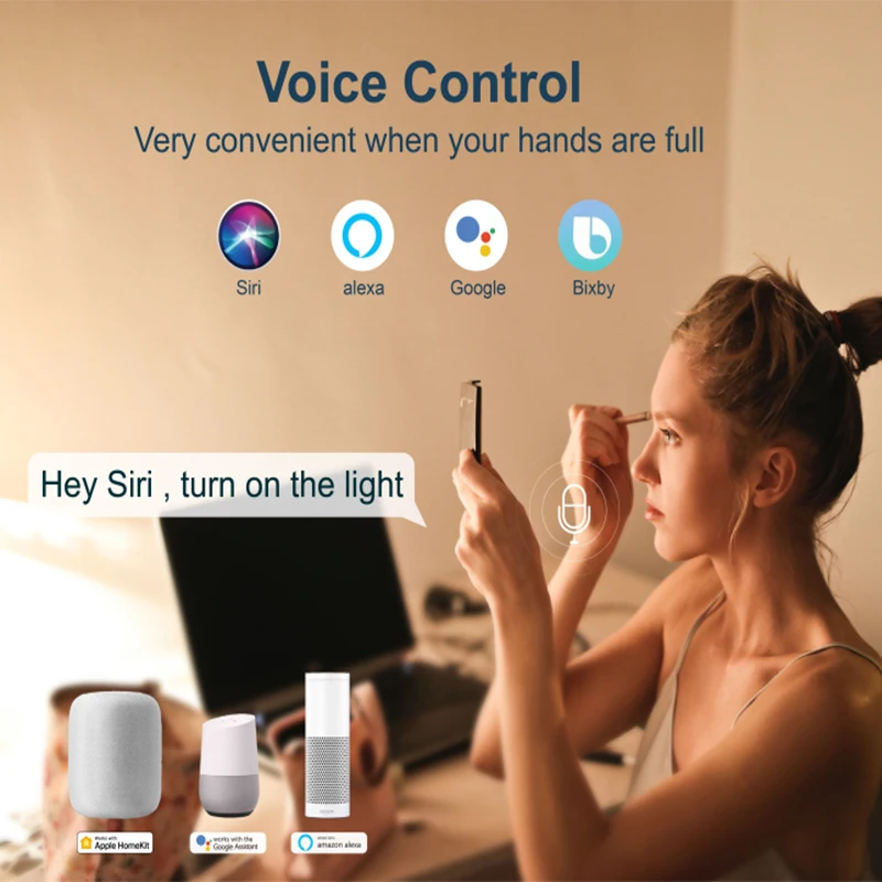 Освободите руки с помощью простых голосовых команд с Alexa/Google Assistant/Siri. Пользователям Apple мобильный телефон не нужно скачивать выделенное приложение и пользоваться приложением Apple Home напрямую, что очень удобно