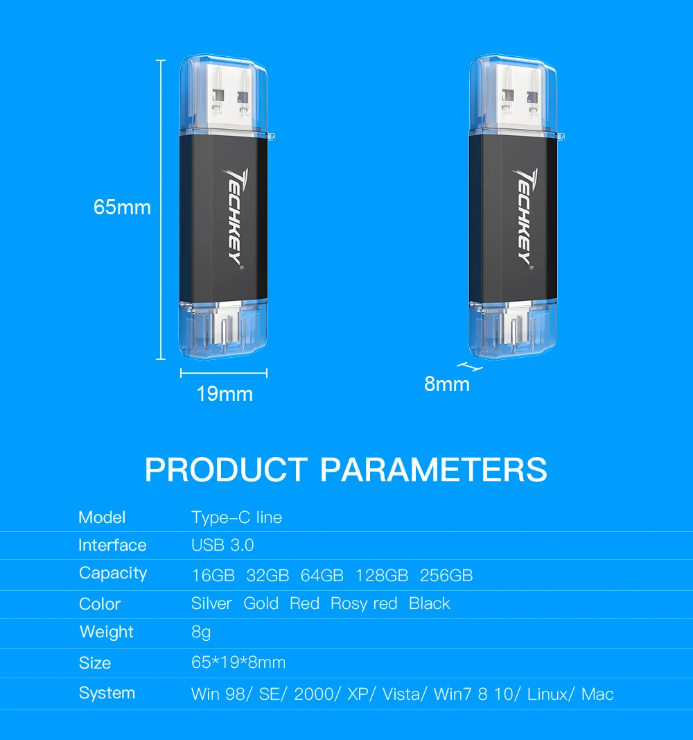 Новая флешка TECHKEY USB 3,0 Type-C флешка 16 ГБ 32 ГБ ручка-накопитель Пользовательский логотип 64 Гб 128 ГБ телефоны loptop пк устройство для хранения usb палка