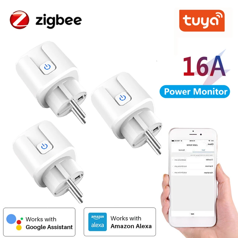 Zigbee 3,0 Tuya ЕС умный Wi-Fi разъем адаптера переменного тока 16A пульт дистанционного управления голосовой Управление Мощность монитор розетка с Google Home и Alexa