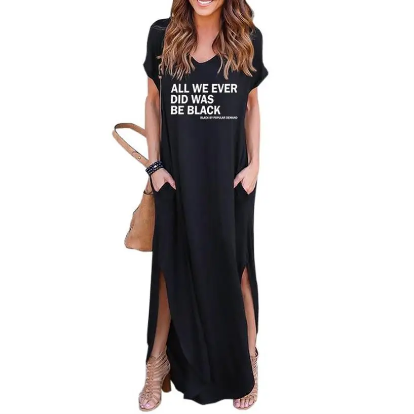 Женское летнее длинное платье, повседневное свободное платье макси с карманами и коротким рукавом, большие размеры 5XL, 2022