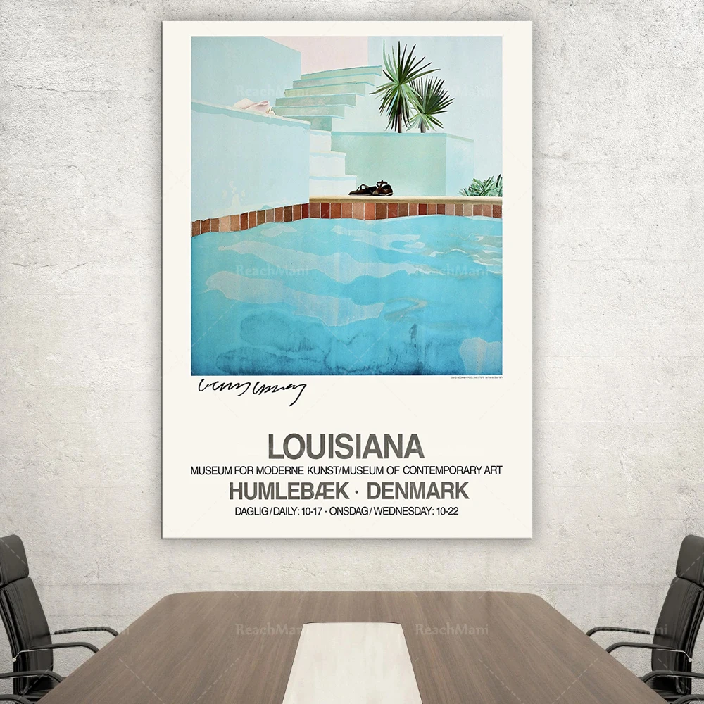 Постер Дэвида хокни, выставочный постер бассейн и ступени, Художественная печать Дэвида хокни, синее искусство, художественное искусство бассейна