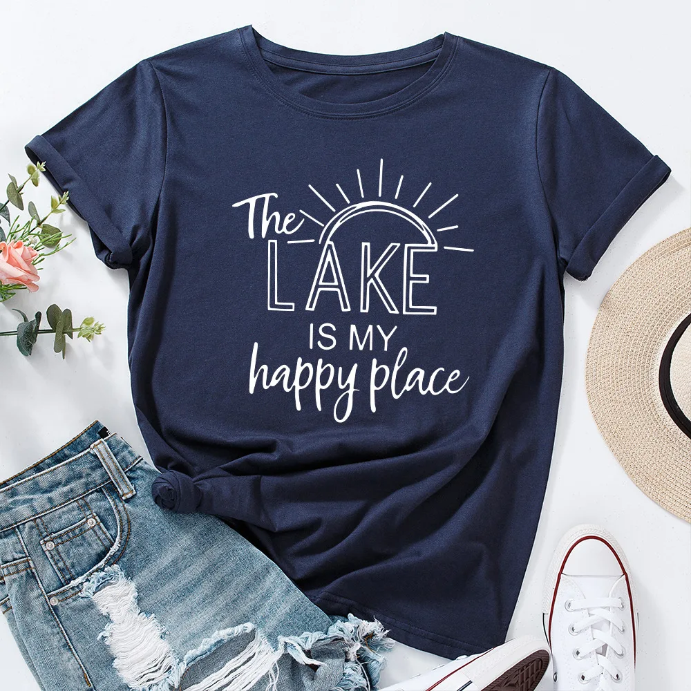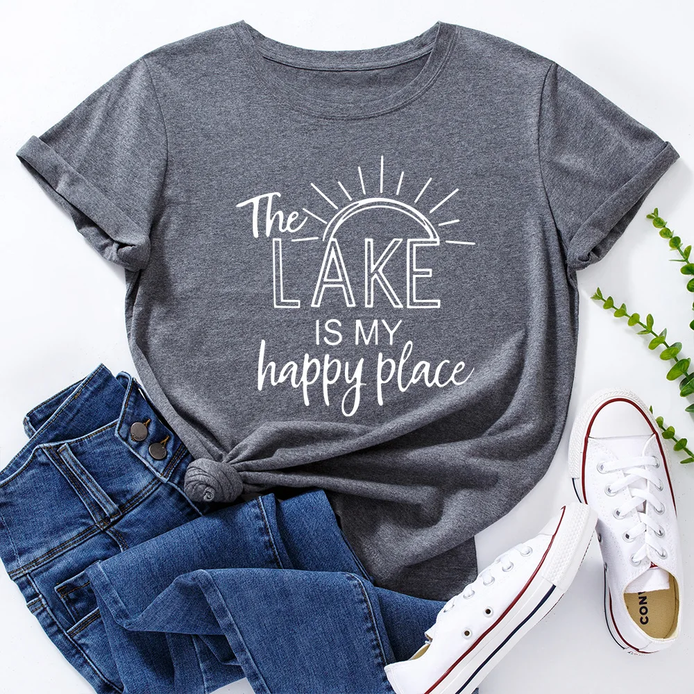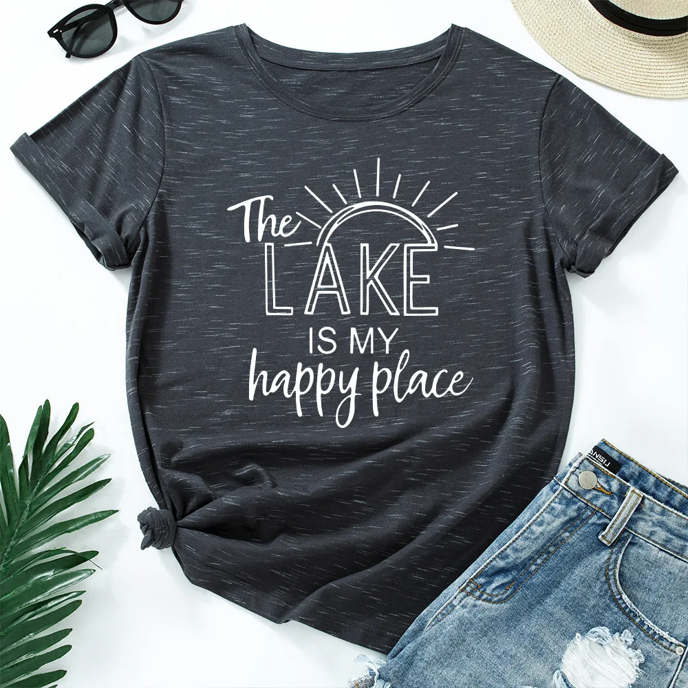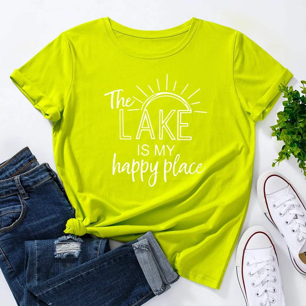 Женская футболка с буквенным принтом The Lake Is My Happy Place, топ с круглым вырезом и коротким рукавом, Повседневная Уличная одежда