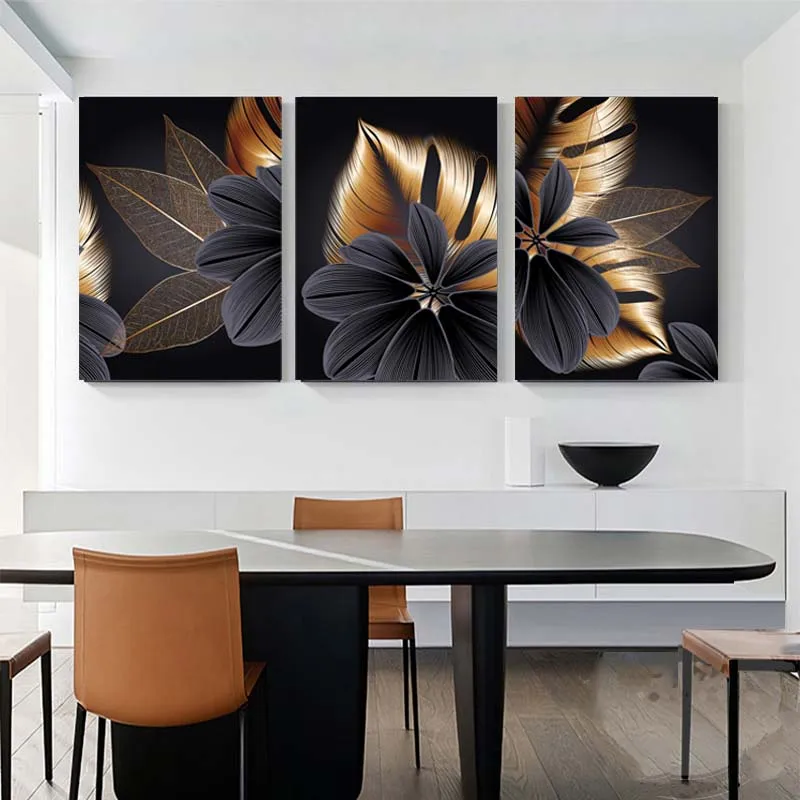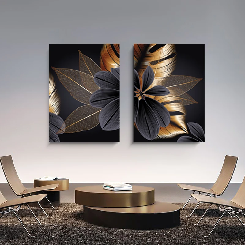 Настенная живопись WANGART, абстрактная картина в скандинавском стиле, декор для гостиной, черный, золотой, лист растений, холст, плакат, Современный домашний декор