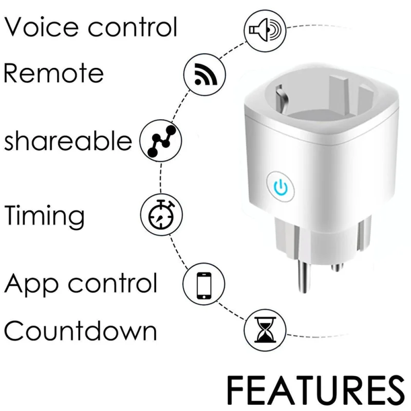 Эта умная розетка позволяет управлять голосом с помощью Alexa/Google help. Простая и быстрая работа, сканируя QR-код для загрузки приложения (app Store / Google play Store)