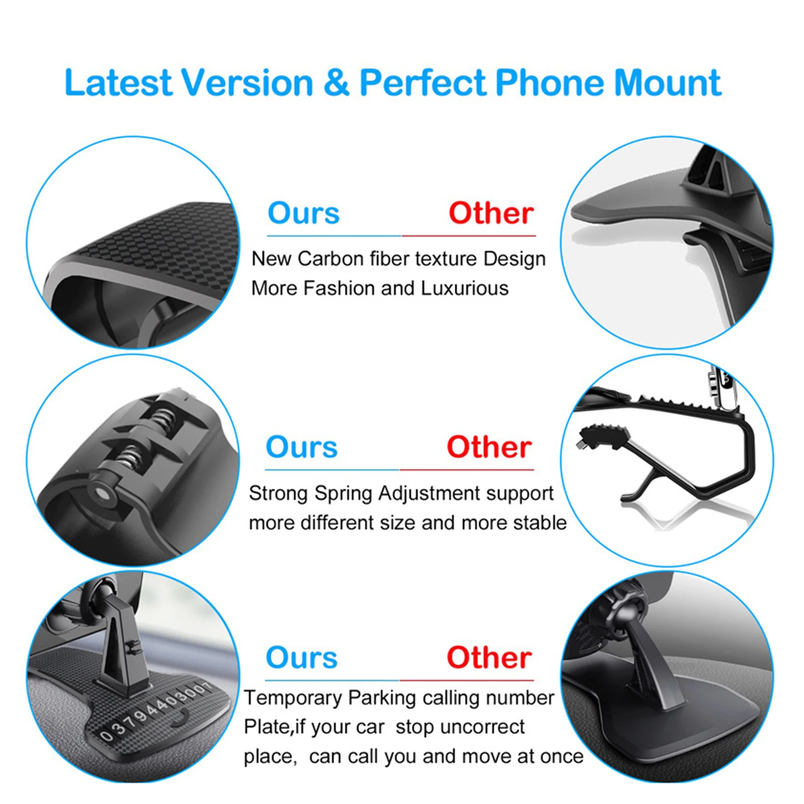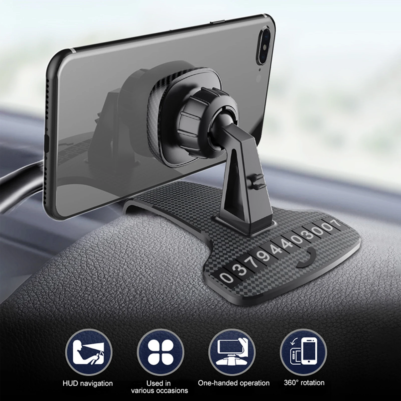 Особенности:1. Более безопасное вождение: Автомобильный держатель телефона имеет дизайн HUD, чтобы держать вашу линию зрения в соответствии с дорогой. Фиксированное положение и угол мобильного телефона этого автомобильного держателя телефона можно регулировать вращением на 360 градусов в соответствии с вашими требованиями, чтобы вы могли получить лучший угол обзора.2. Управление одной рукой: Этот Автомобильный держатель телефона имеет вращение на 360 градусов, поэтому его легко подобрать и вернуть телефон одной рукой. И вы можете использовать свой телефон одной рукой, и он прост в установке и удалении смартфона. Что еще более важно, этот держатель телефона гарантирует безопасное вождение при использовании GPS или ответах на телефонный звонок.3. Прочный и функциональный: Автомобильный держатель телефона изготовлен из АБС-материала, который является прочным и термостойким.4. Широкая совместимость: можно регулировать, подходит для мобильных телефонов 3-7 дюймов. Подходит для большинства мобильных устройств.5. Магнитный дизайн: Этот Автомобильный держатель телефона имеет сильную магнитную конструкцию крепления, которая легко устанавливается на приборную панель, и он по-прежнему достаточно устойчив, чтобы держать ваш мобильный телефон во время вождения по неровной дороге, И магнит имеет узор из углеродного волокна на поверхности. Этот автомобильный держатель для телефона изготовлен из мягкой нескользящей Силиконовой подкладки и изогнутой основы.Характеристики:Название: Автомобильный держатель для телефона (с номерная табличка для парковки)Материал: PC + ABSЦвет: черныйПрименение: с регулируемой шириной, подходит для 3-7 дюймовый мобильный телефонУпаковочный лист:1 x автомобильное крепление для телефона (Примечание: только держатель, не включает сотовый телефон.)Наклейка с цифрами-1 шт.Примечания:Из-за световых эффектов и углов съемки могут быть некоторые различия в цвете, пожалуйста, поймите.