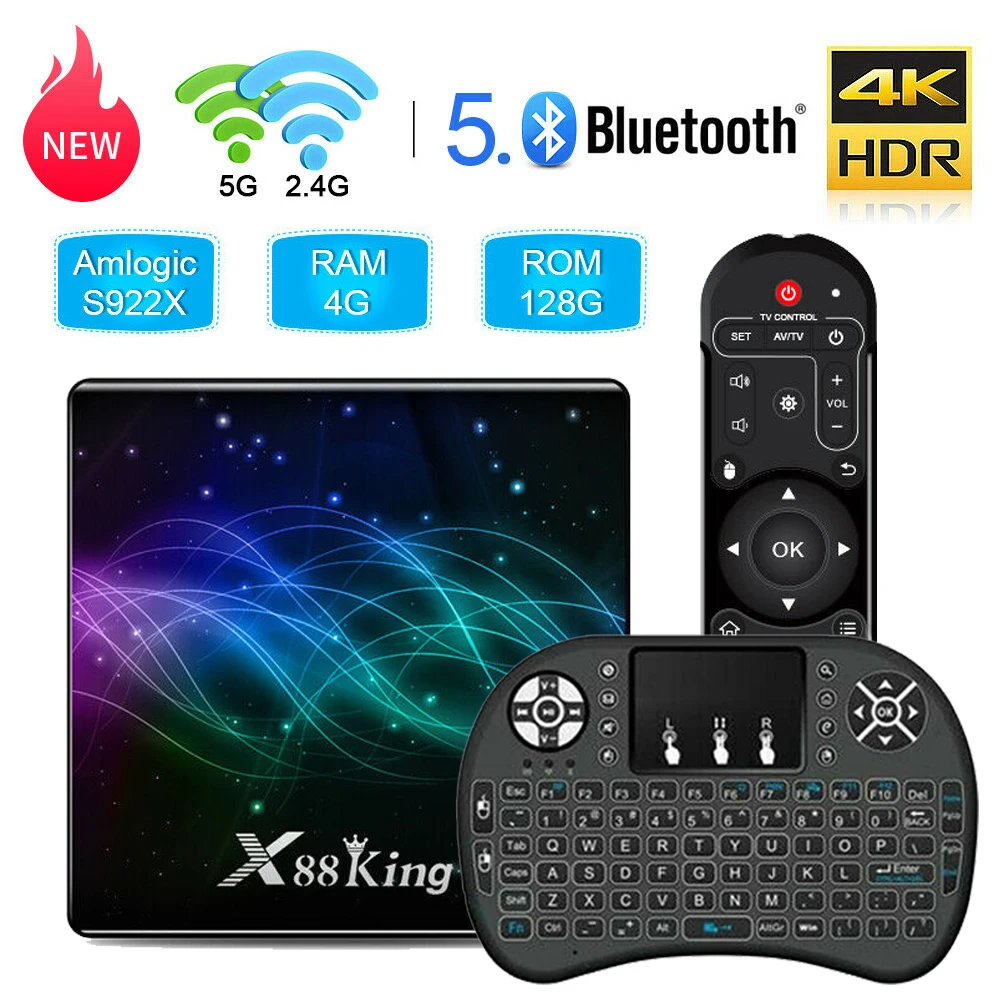 X88 King Смарт ТВ коробка Android 9,0 DDR4 4 Гб Оперативная память 128 Гб Встроенная память Amlogic S922X ТВ коробка двухъядерный процессор Wi-Fi BT5.0 1000M 4K H.265 HD медиа-плеер