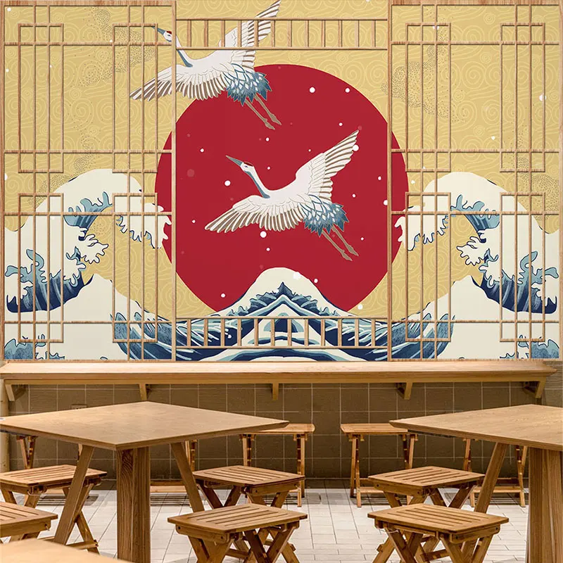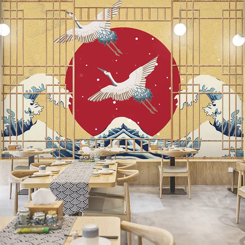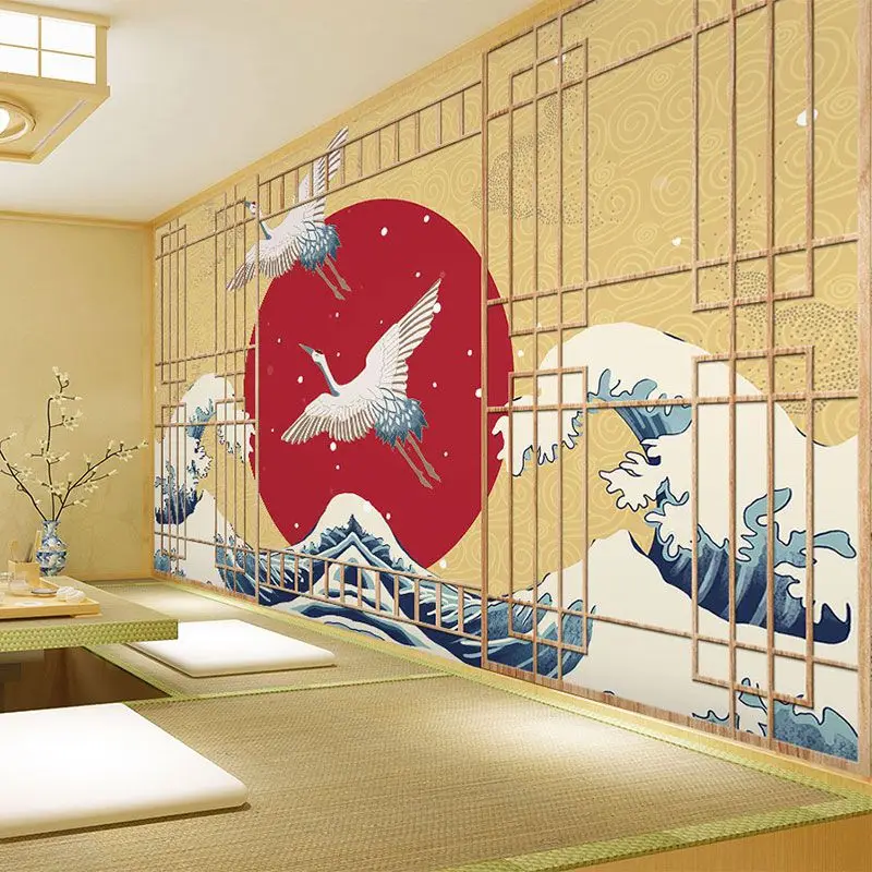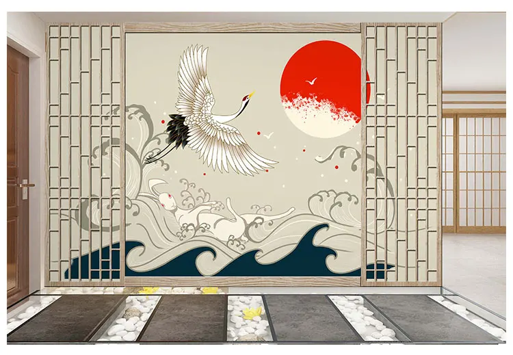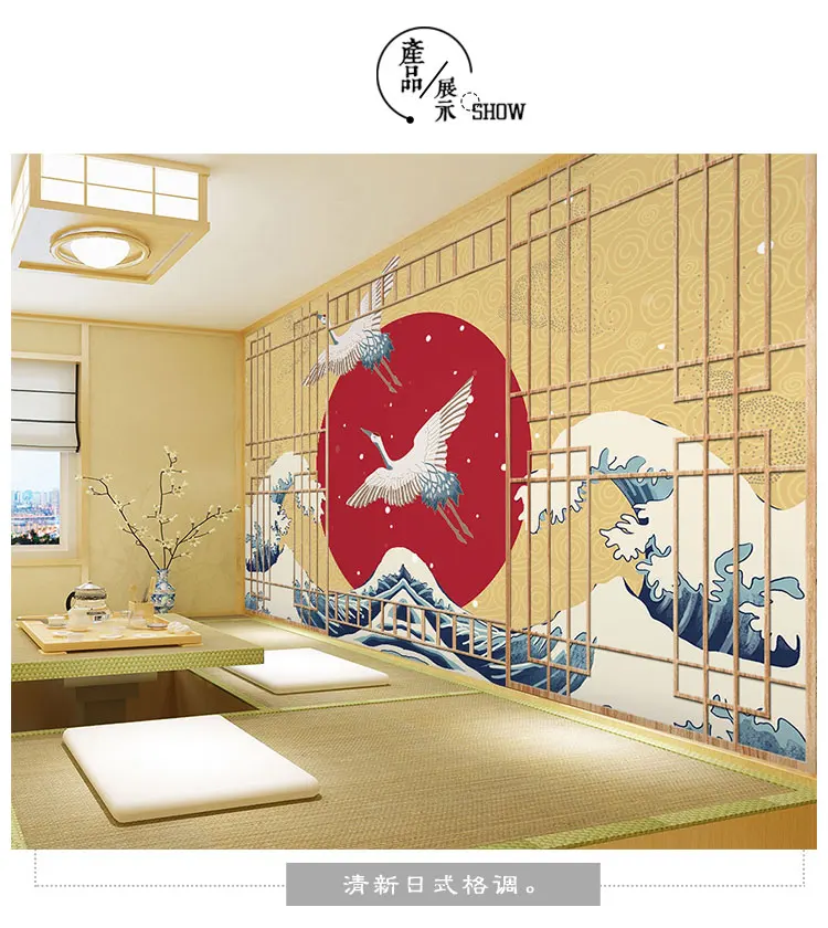 3D Ретро кран японское украшение Самоклеящиеся обои татами фон волна плавающий мир роспись papel DE parede