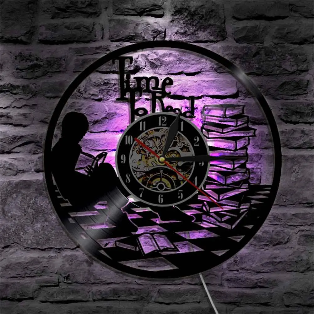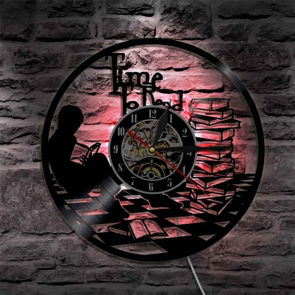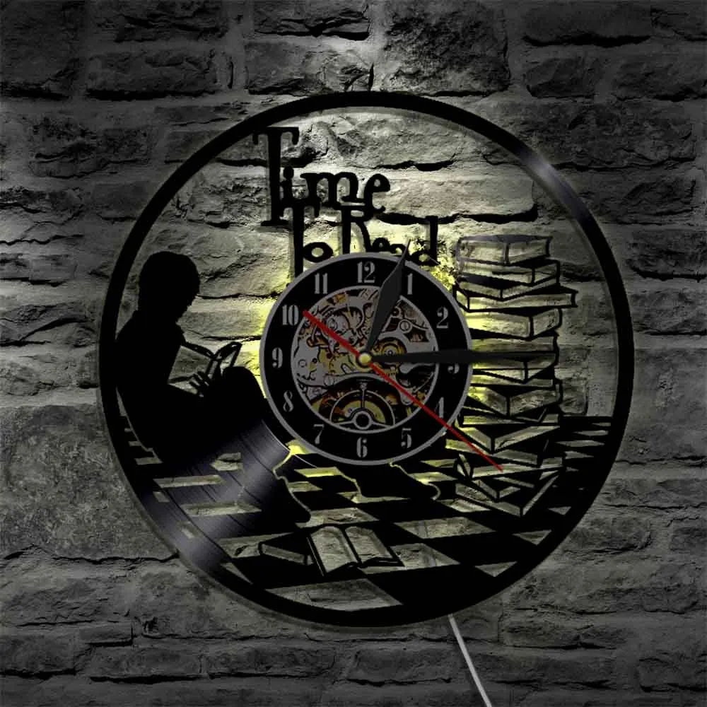 Настенные часы время для чтения, школьные черные часы с виниловой пластиной, для библиотеки, детской комнаты для чтения, украшение интерьера, подарок для чтения книг