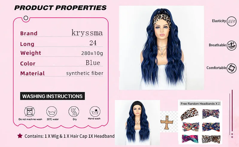 Голубая волнистая повязка на голову Kryssma, синтетические парики, ...