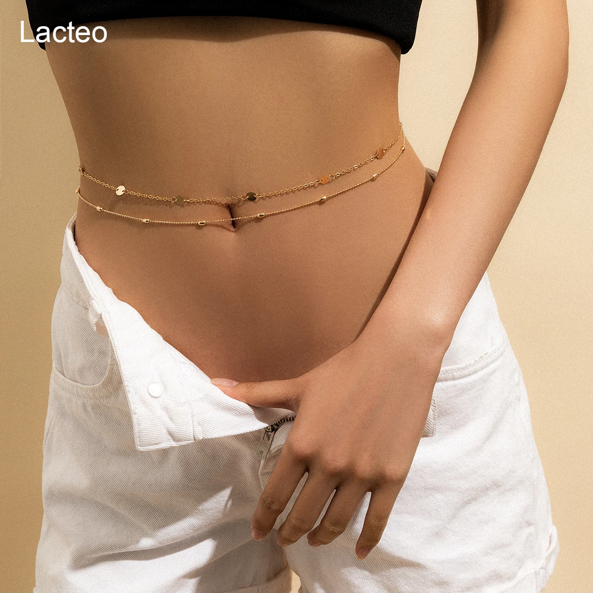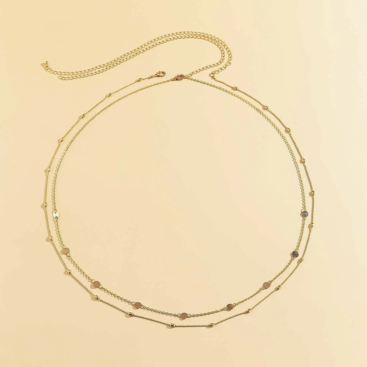 Lacteo двойной Слои в богемном стиле металлические круглые бусины из Медь цепи пояс-цепочка на талию трендовые привлекательные летние пляжные женские нательная цепочка
