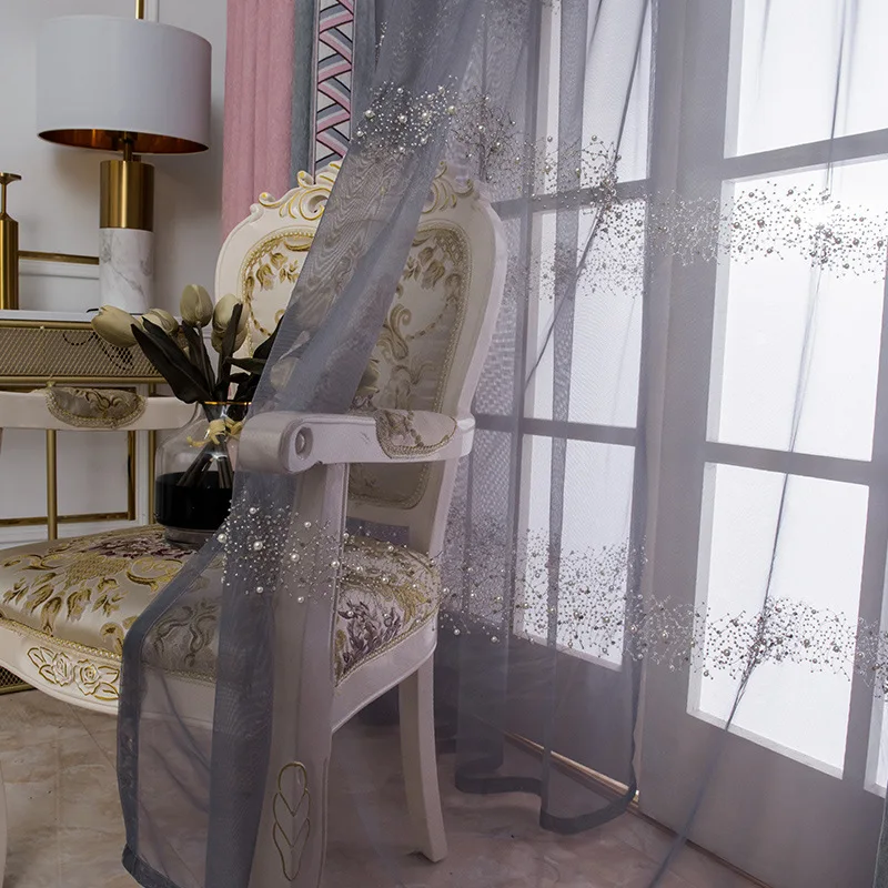 Роскошные красивые 3D жемчужные серия серые тюлевые шторы для спальни алмазные яркие прозрачные для окон гостиной кухни