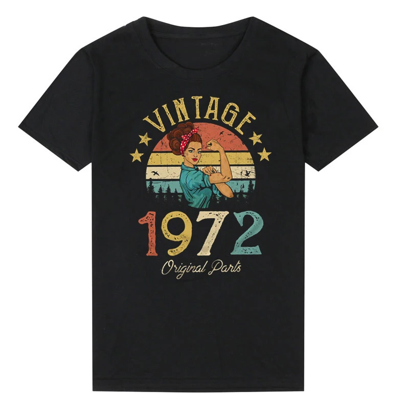 Винтажная женская футболка 1972 Quaranline, хлопковая цветная Ретро футболка 49 лет, подарок на день рождения, женские топы с короткими рукавами
