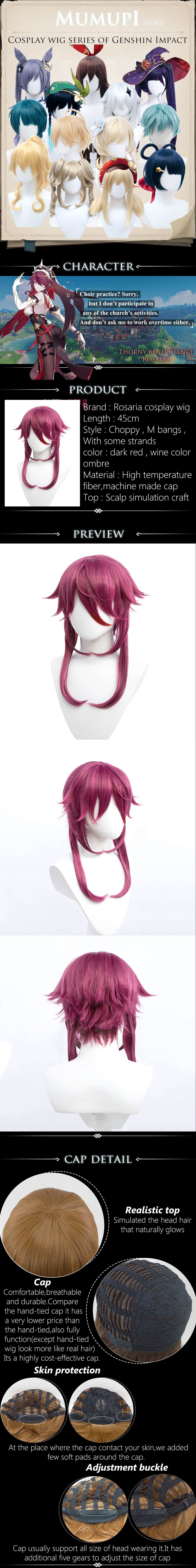Короткий парик синтетические красный Розария Косплэй парики для Для женщин Genshin Imapct челки эффектом деграде (переход от темного к изменчивые надписью Messy Hair расширение вечерние на заказ