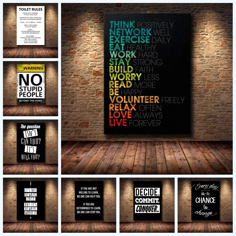 Вдохновляющие Слова, украшение для офиса, настенный постер с мотивационными фразами, настенное искусство без боли, без усиления, холст, картина, принты без рамки