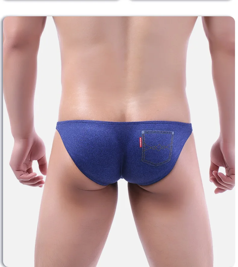 Трусы мужские в ковбойском стиле, пикантное нижнее белье для геев, джинсы с принтом, трусы-плавки, с U-образным карманом, мужские с заниженной талией