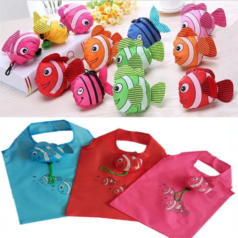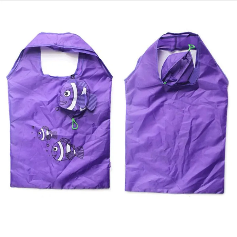 Пластиковая Складная многоразовая сумка для покупок, сумка-тоут с мультяшными морскими рыбками, фруктами, овощами, продуктами, хранение продуктов, мешок на плечо