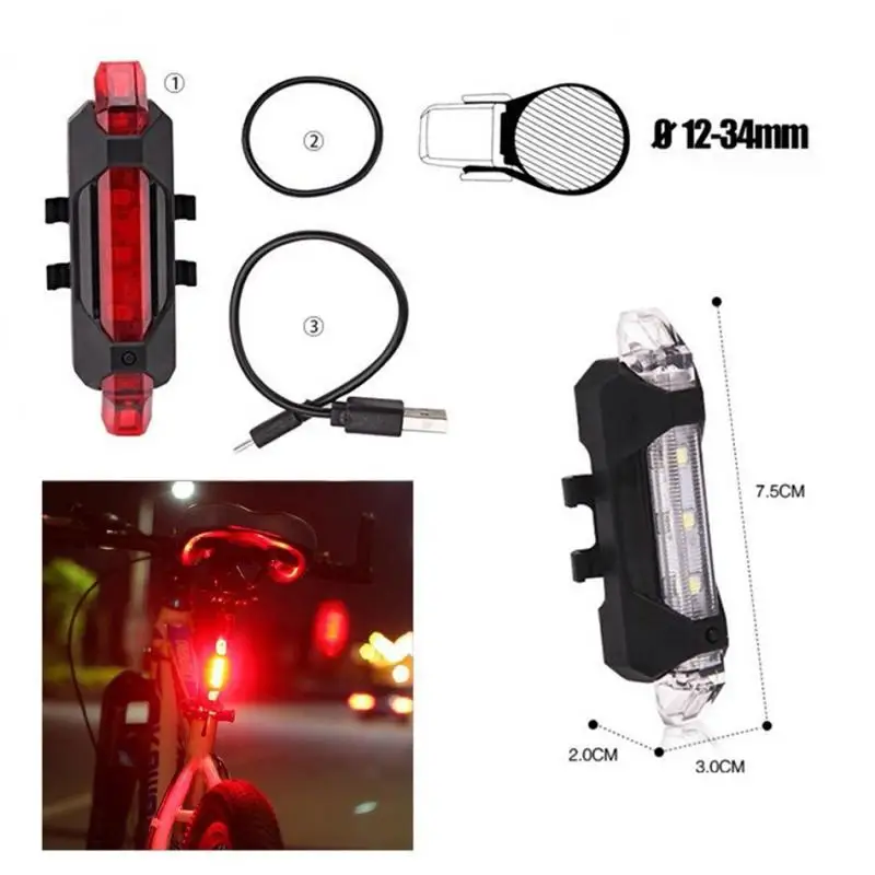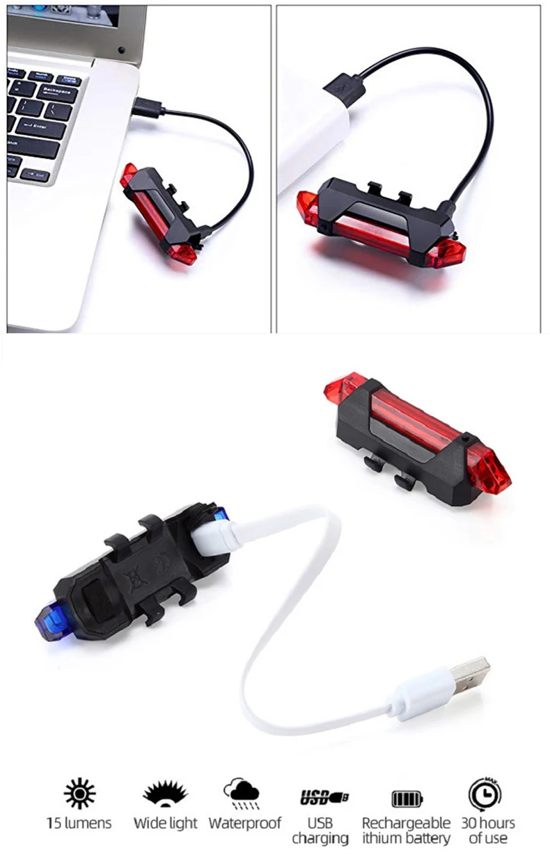 USB Перезаряжаемый велосипедный задний фонарь и автоматическое отключение при полной зарядке.