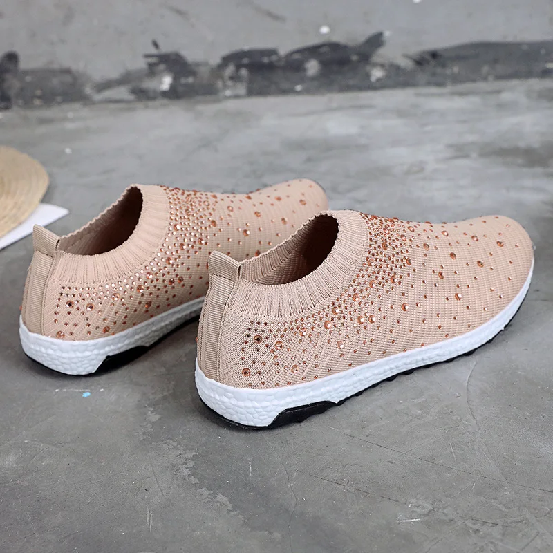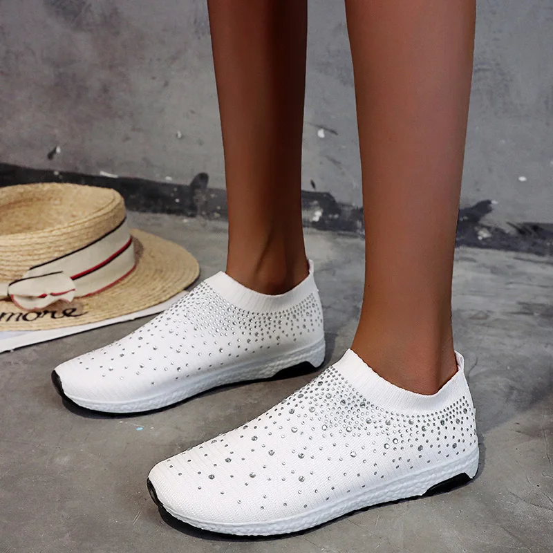 Кроссовки женские, дышащие, со стразами, до щиколотки, обувь на пло...