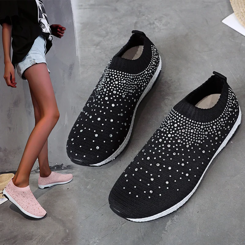 Женские модные кроссовки; Роскошный украшенный стразами носок обувь женская обувь CREEPERS обувь на плоской подошве, повседневная обувь на плоской подошве без застежки; Лоферы с Zapatillas Mujer