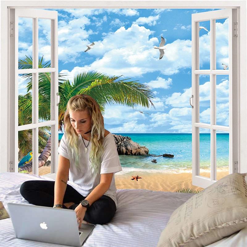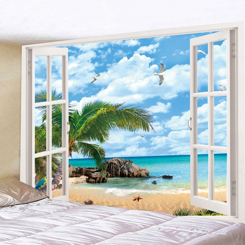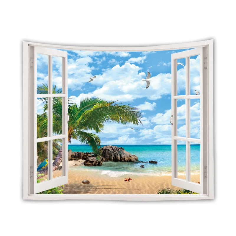 Дешевый гобелен для пляжа за дверью, настенный подвесной ковер в стиле хиппи с большим рисунком пейзажа, океанического искусства, Настенный Ковер, декор для потолка и комнаты