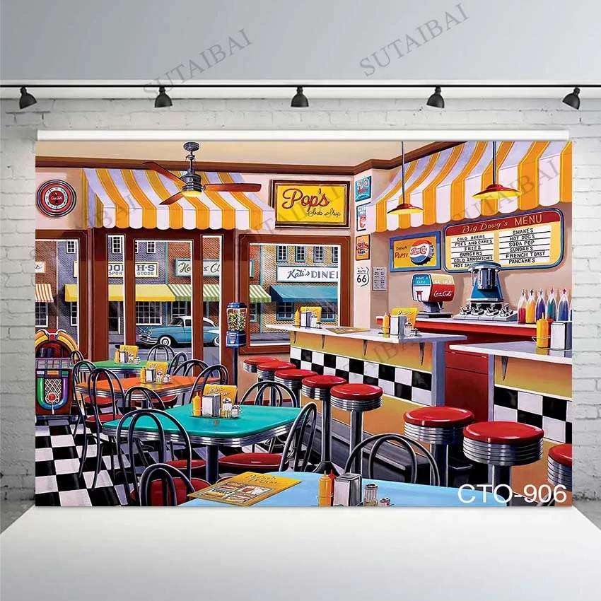 Быстро Еда Ресторан счетчик стол стул столовой вечерние пользовательский Фотофон для студийной съемки фон Виниловый фон для фотосъемки в романтическом и баннер для фотосессии