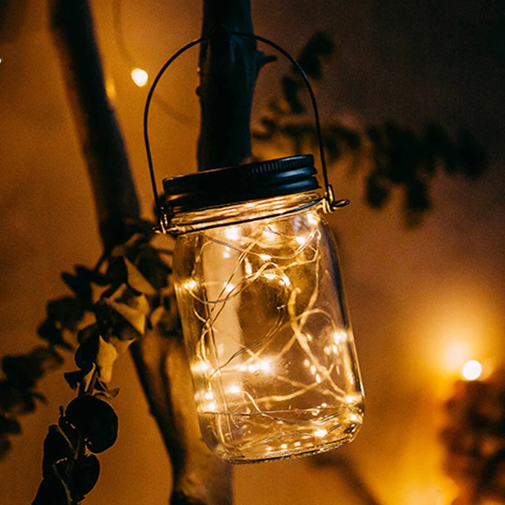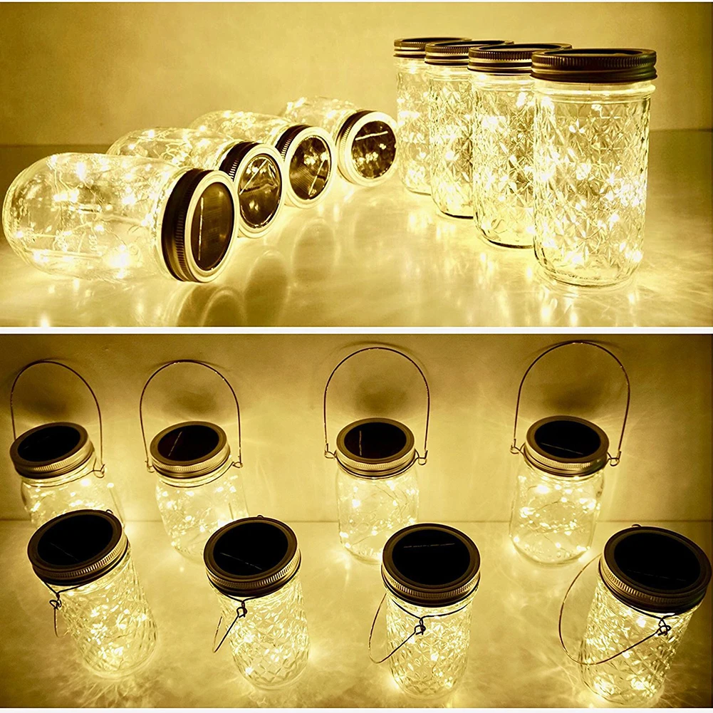Светодиодная гирлянда на солнечной батарее 1-2 м, медный провод, сказочные фонарики Мейсона, уличные водонепроницаемые украшения для вечерние ринки, свадьбы, сада, декоративная лампа