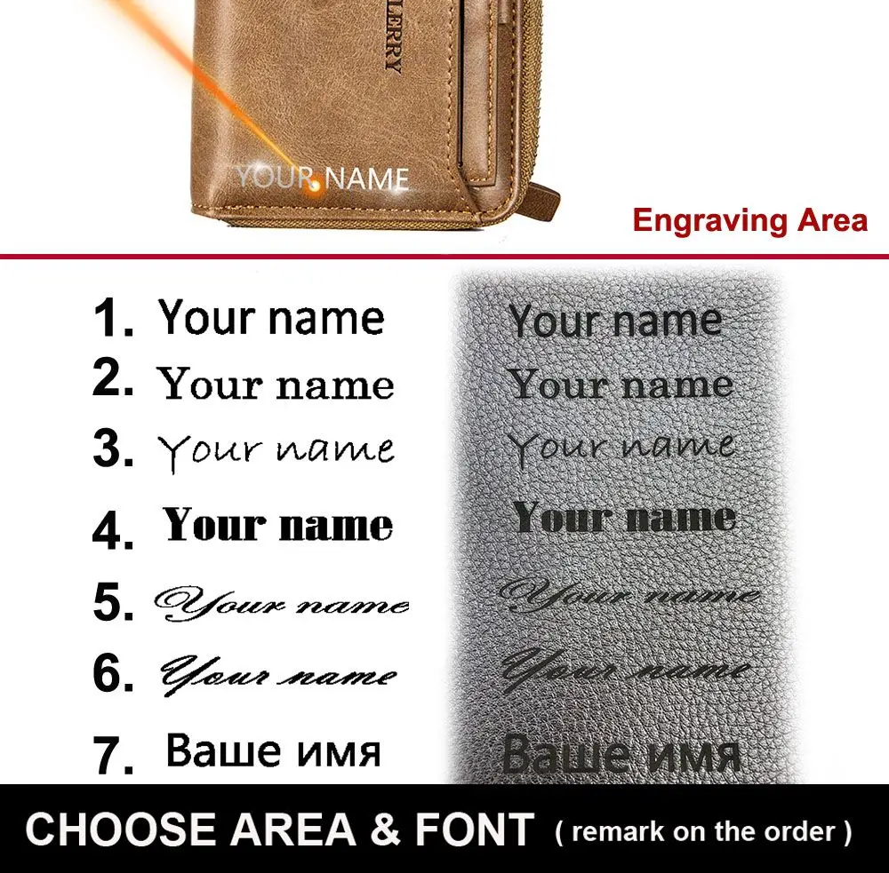Новый Для мужчин кошельки, бесплатная доставка имя гравировка на молнии Держатель для карт образец однотонные Для мужчин кошелек, с кармашком для монет, высокое качество кожаный мужской кошелек cartera