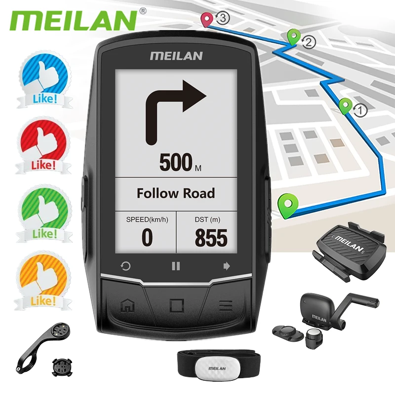 Велосипедный GPS-компьютер Meilan M1, GPS-навигация, BLE4.0 спидометр, подключение для езды на велосипеде с монитором частоты вращения педалейчасовизмерителем мощности