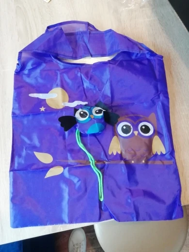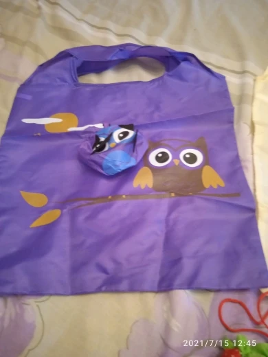 Нормальные многоразовые сумки, описанию соответствуют, сшиты не идеально, но в целом норм. Сложенная сумка в сову отлично помещается, но как сова в раскрытом виде болтается мне не понравилось, поэтому отпорола. По отдельности лучше. Заказывала две разных цветов. У бежевой ткань более грубая и шуршащая, а у голубой более мягкая и приятная. Посылка пришла через 2 недели.