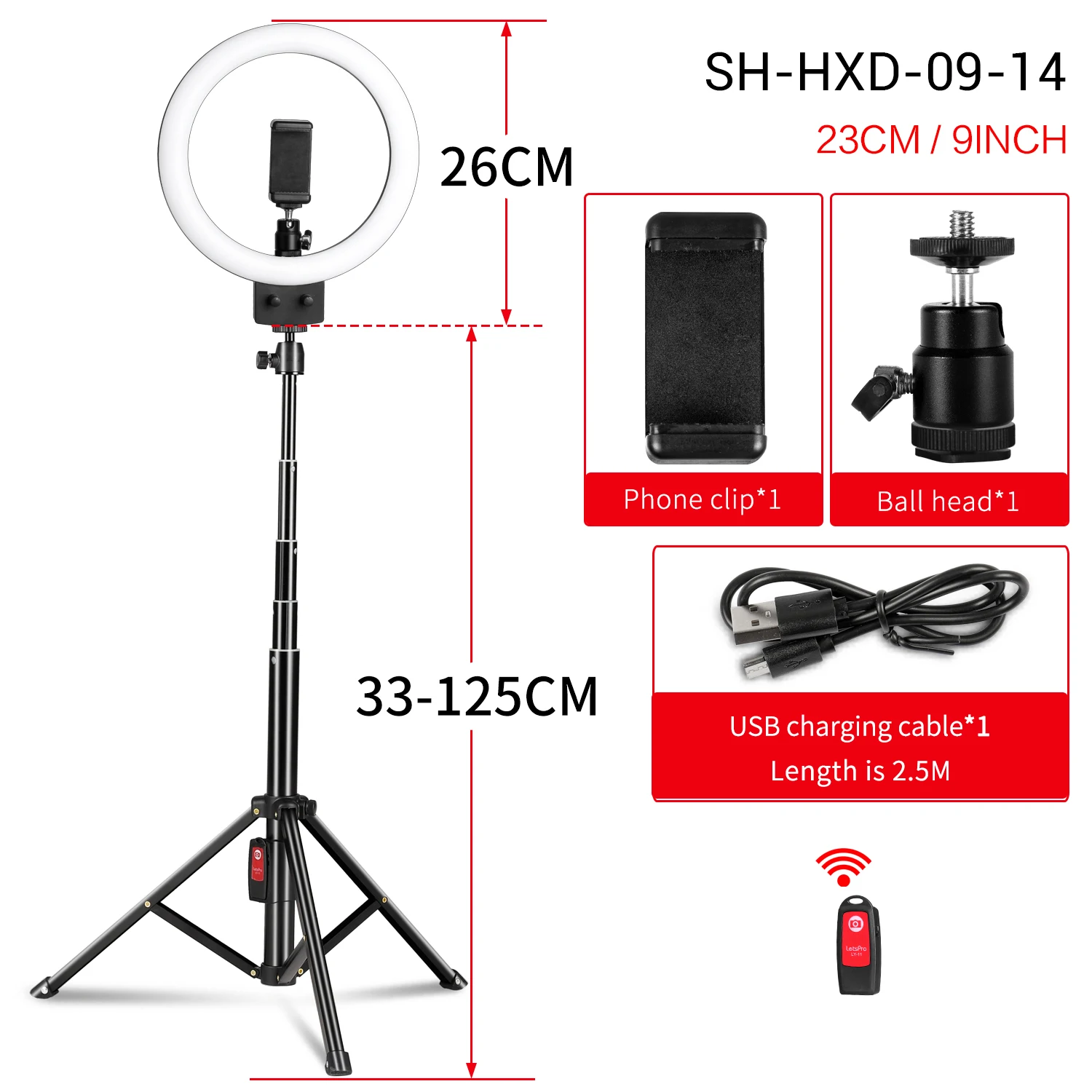 Features 22SH 9inch/23cm Ring Light Remote Lamp With Tripod Stand