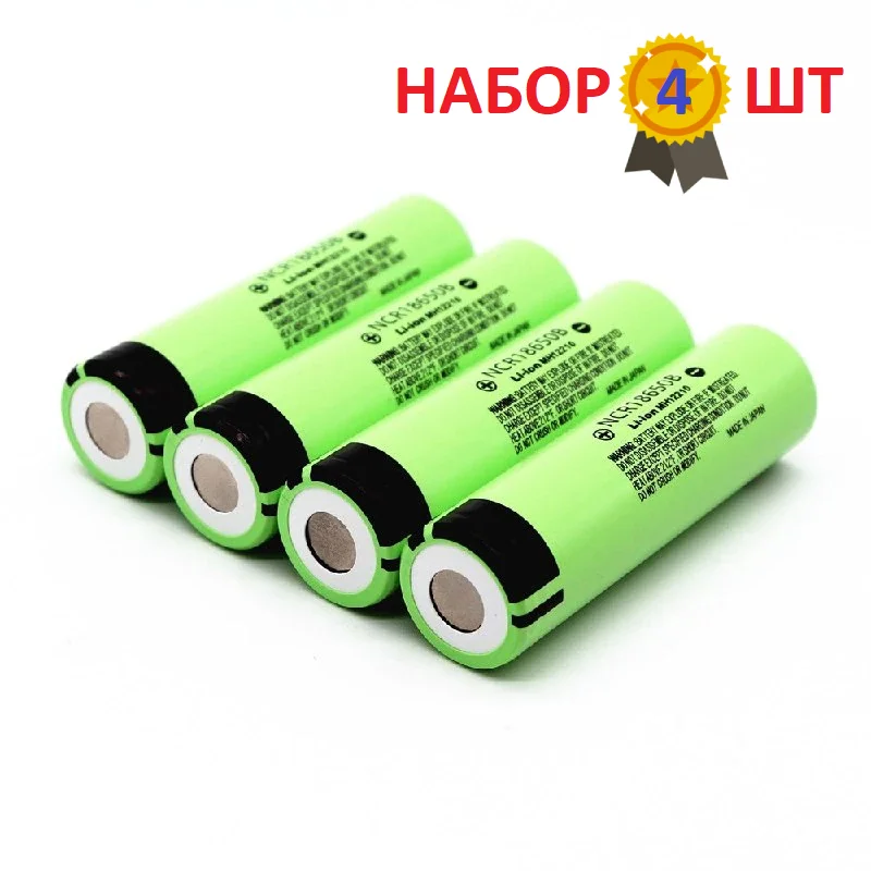 4шт Аккумулятор Li-ion 18650 NCR18650B 3400 mAh 3.7V