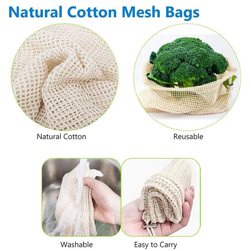 Хорошая воздухопроницаемость сетчатый мешок из хлопка сохраняет свежие овощи и фрукты.