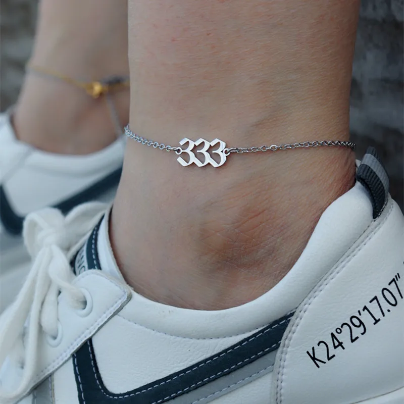 Пляжные аксессуары браслет Cheville Femme Angel Number ножные браслеты для женщин ювелирные изделия из нержавеющей стали Золотая цепочка Cavigliera Donna