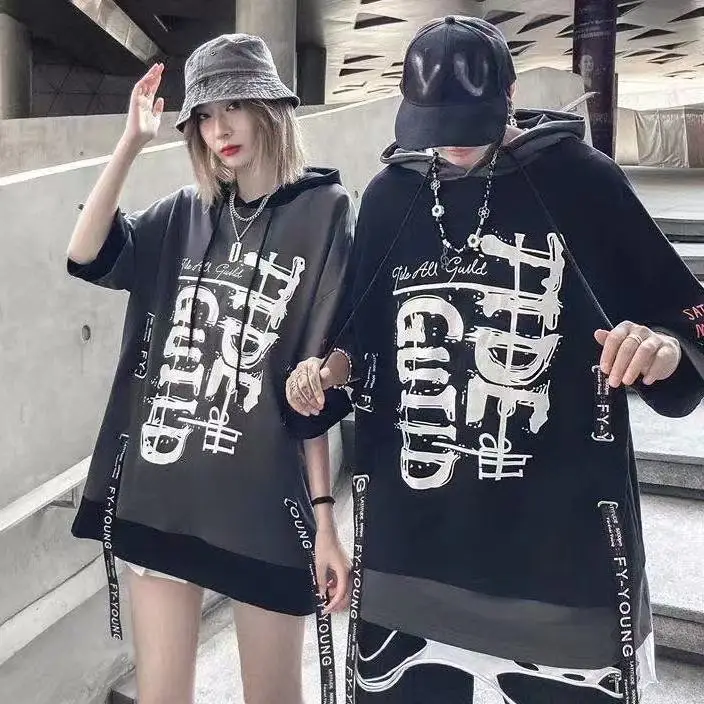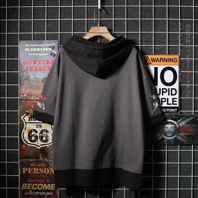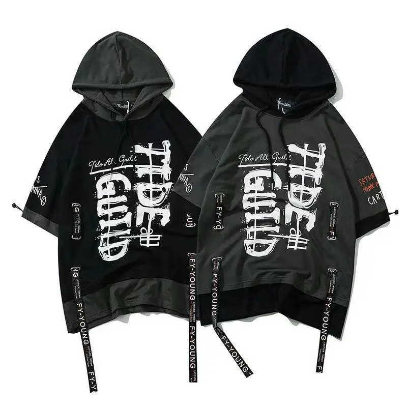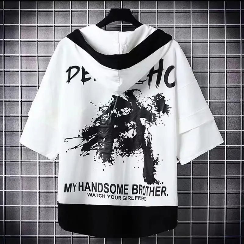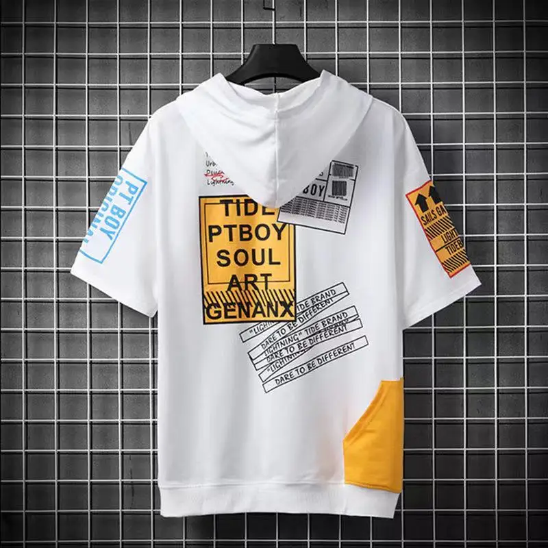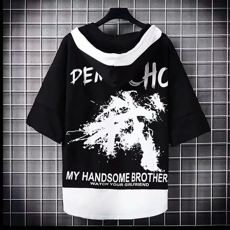 Мужская футболка с коротким рукавом, с капюшоном и графическим принтом