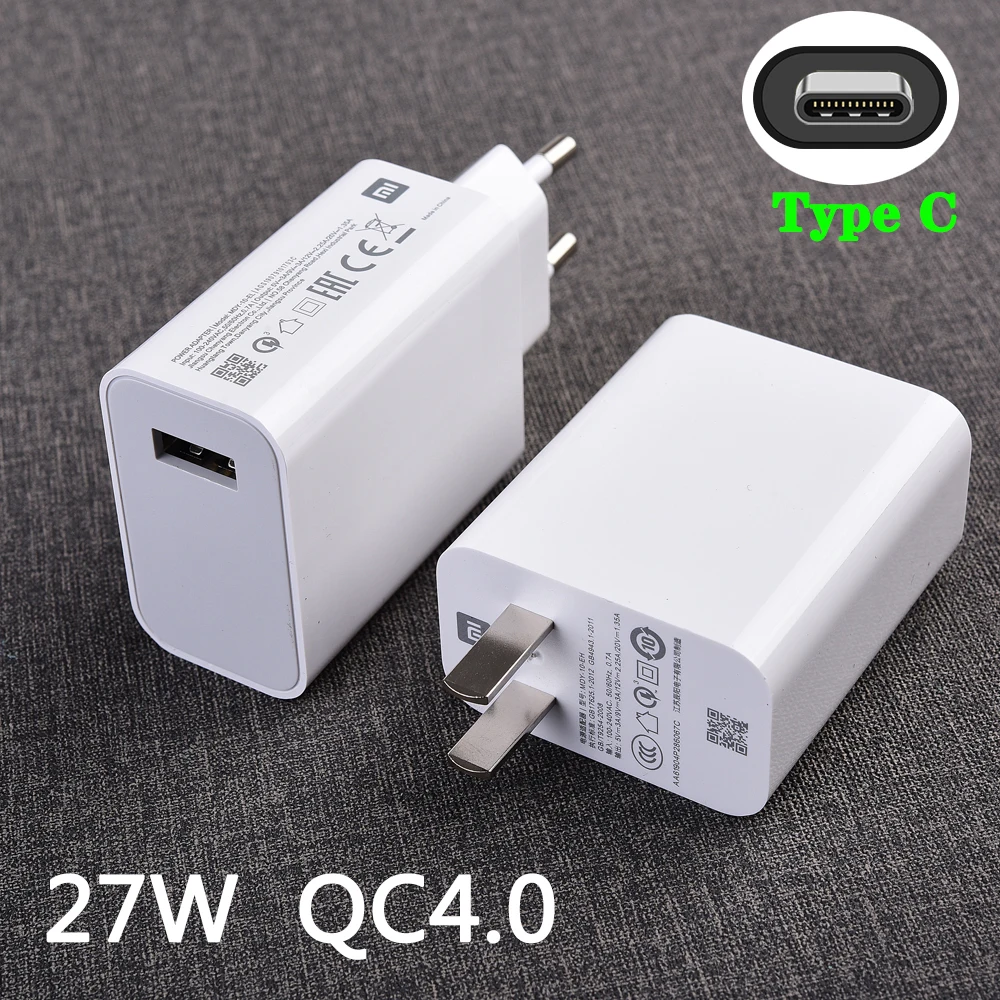 Оригинальное быстрое зарядное устройство Xiaomi 27 Вт QC 4,0, турбозарядное устройство Type-C для Mi 10 Pro 9 SE Redmi Note 8 K20 K30 Pro Poco F2 Pro MIX 3 Pad4