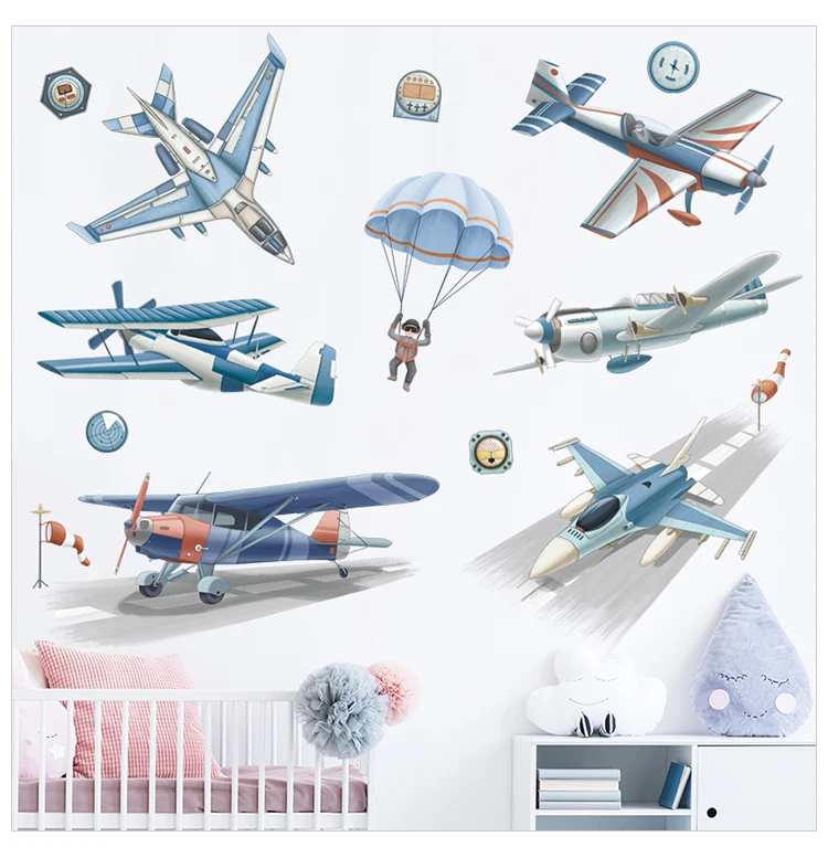 Горячая Распродажа самолет наклейки на стену для мальчиков Спальня ...
