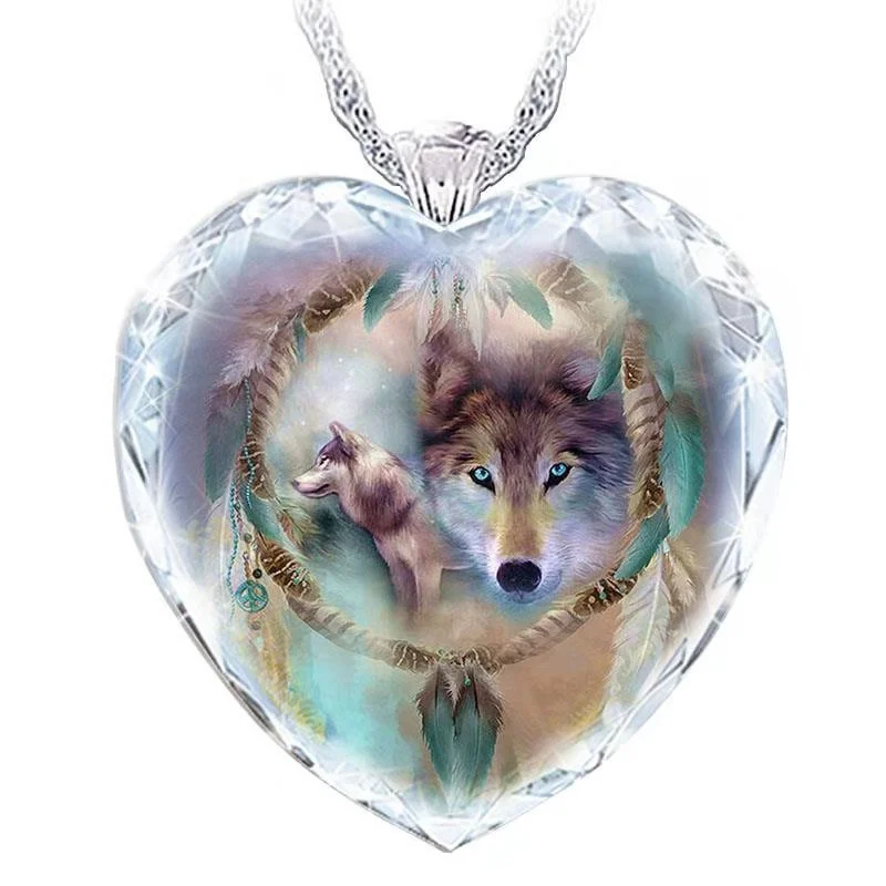 Ожерелье-подвеска в форме сердца из хрустального стекла, волк, тотем, Женское Ожерелье, металлические аксессуары для животных, ювелирные изделия для вечеринки, подарок