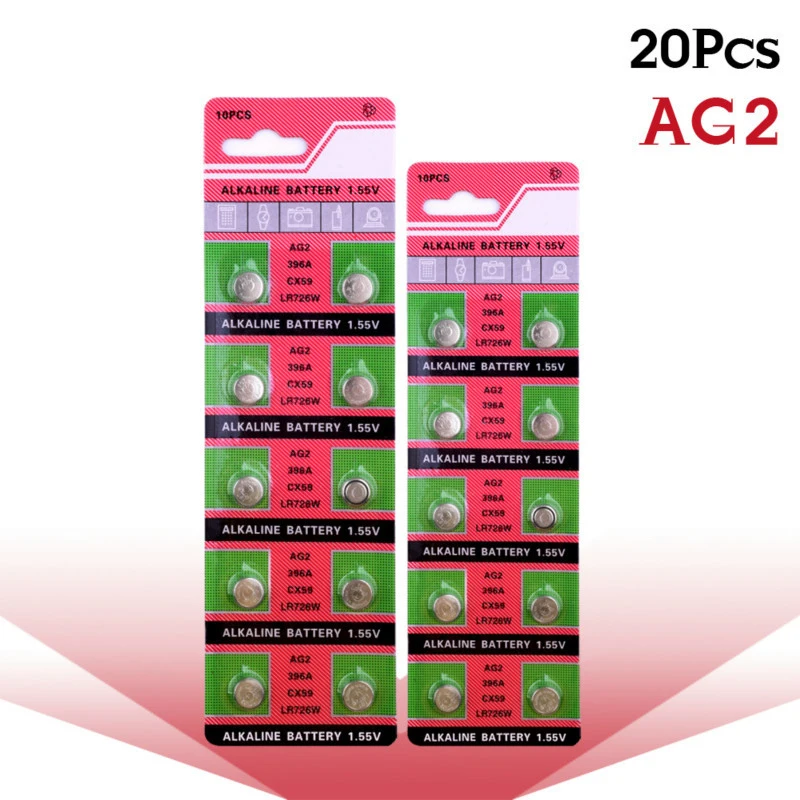 Аккумулятор AG2 1,55 в SR726W, щелочная батарея 396 397 LR726 SR59 SG2, 2 упаковки20 шт.