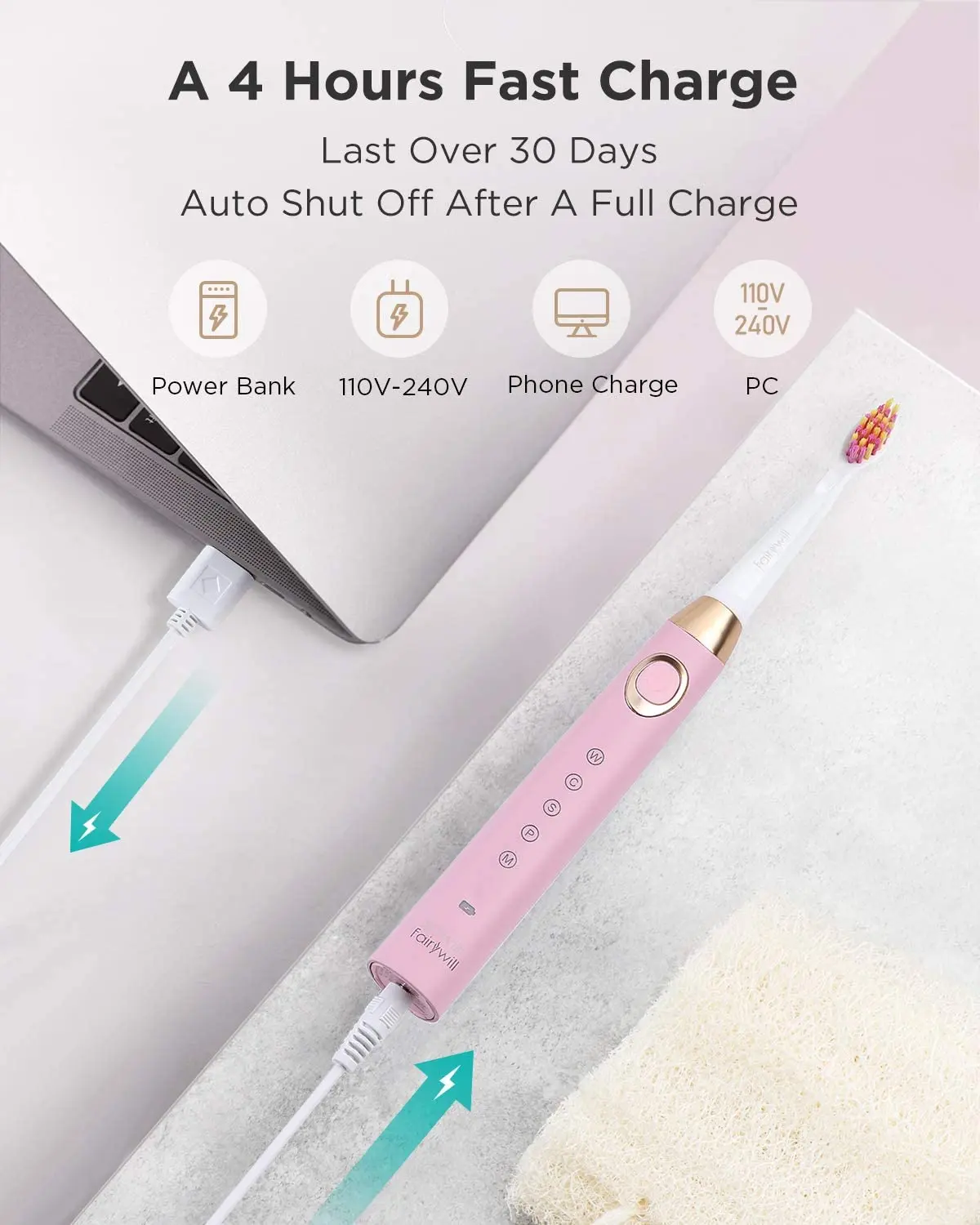 Электрическая зубная щетка Fairywill FW508 для взрослых, ультразвуковой прибор для чистки зубов, зарядка через USB, умный таймер, режим здоровья
