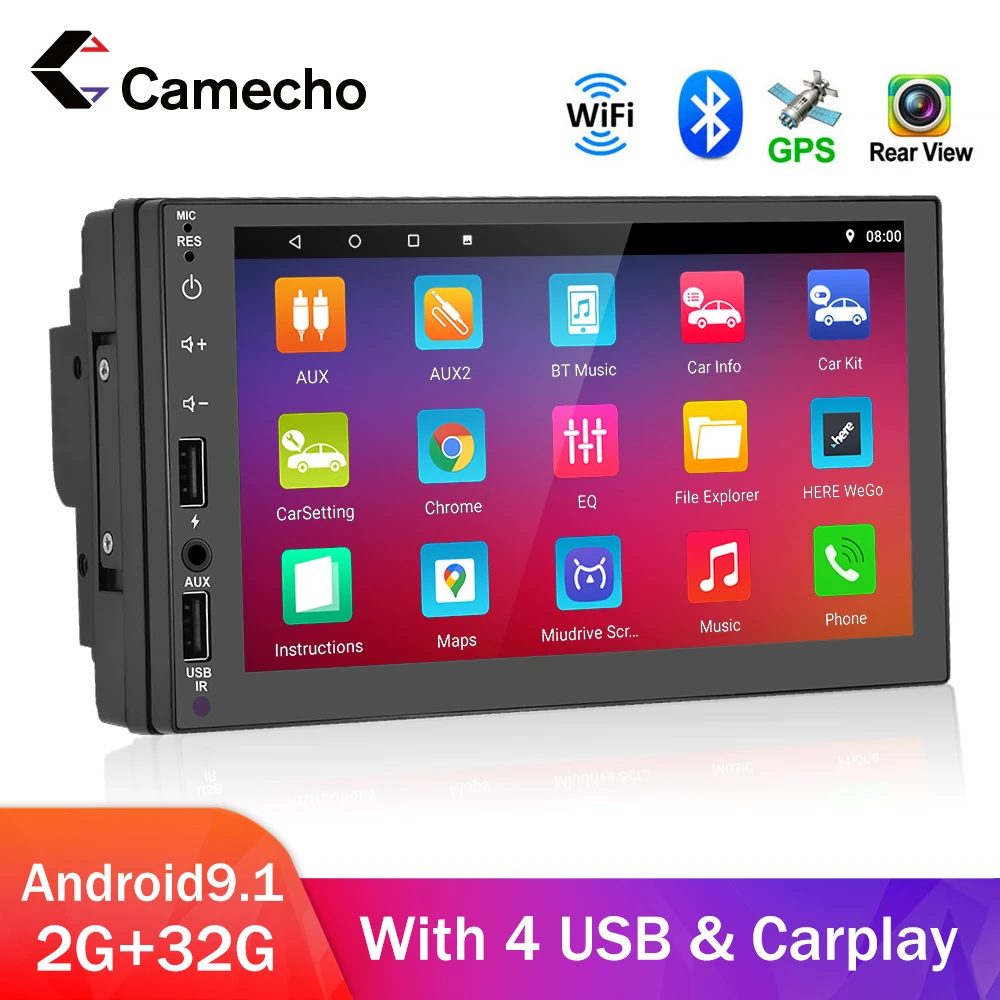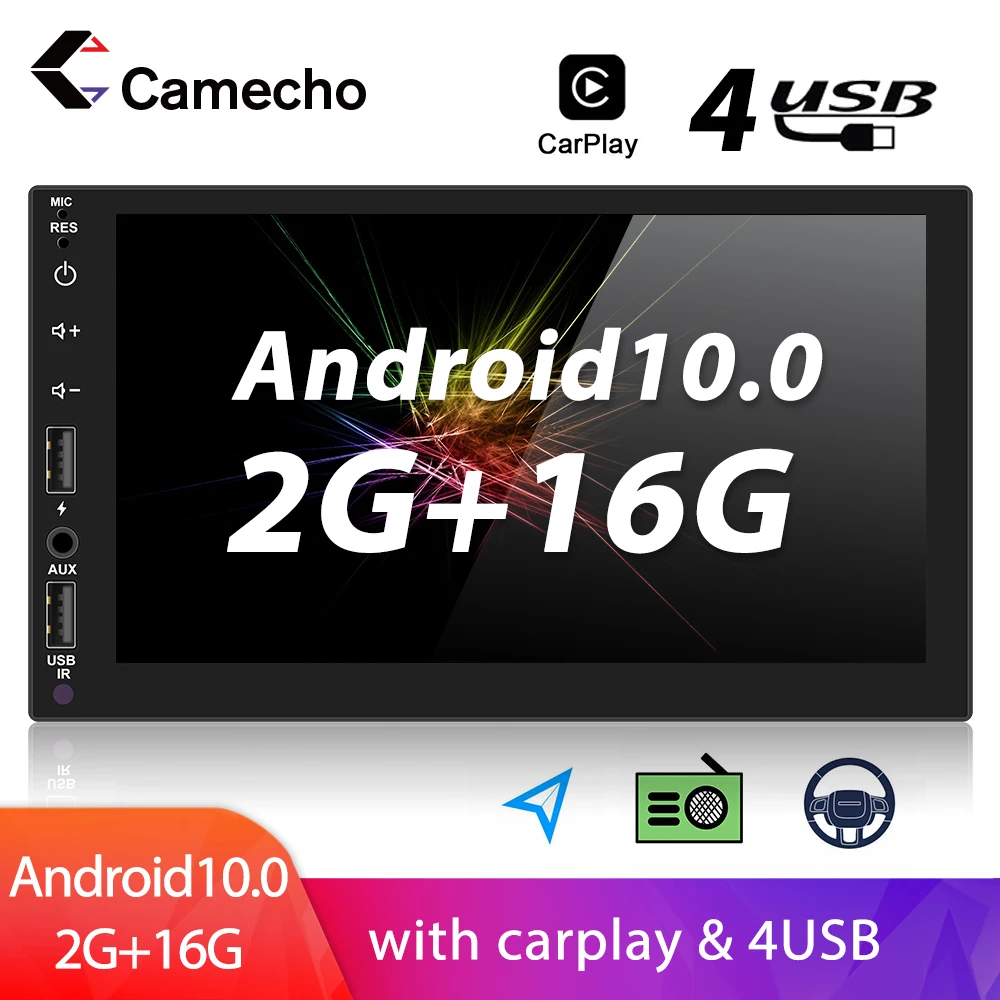 Camecho 2Din 7 ''Android 10 2 + 32G Автомобильный мультимедийный плеер с Wifi4USB внутреннийFMRDS MirrorLink1080P HD экранCarplay