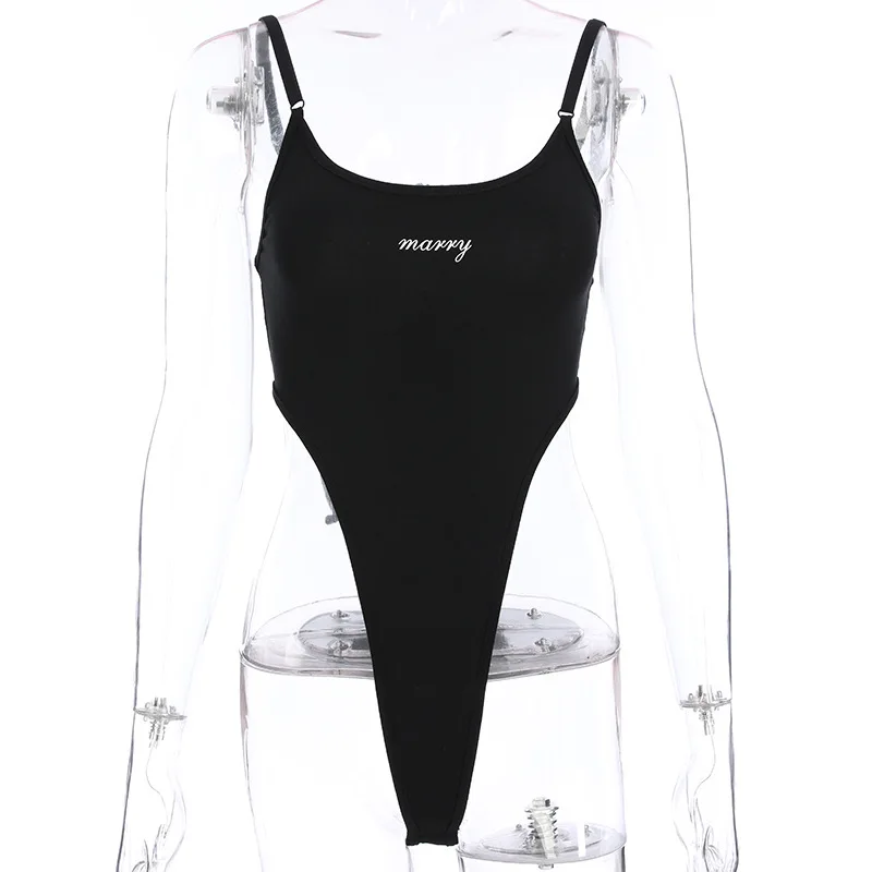 Женское хлопковое боди на бретелях-спагетти, черная футболка большо...