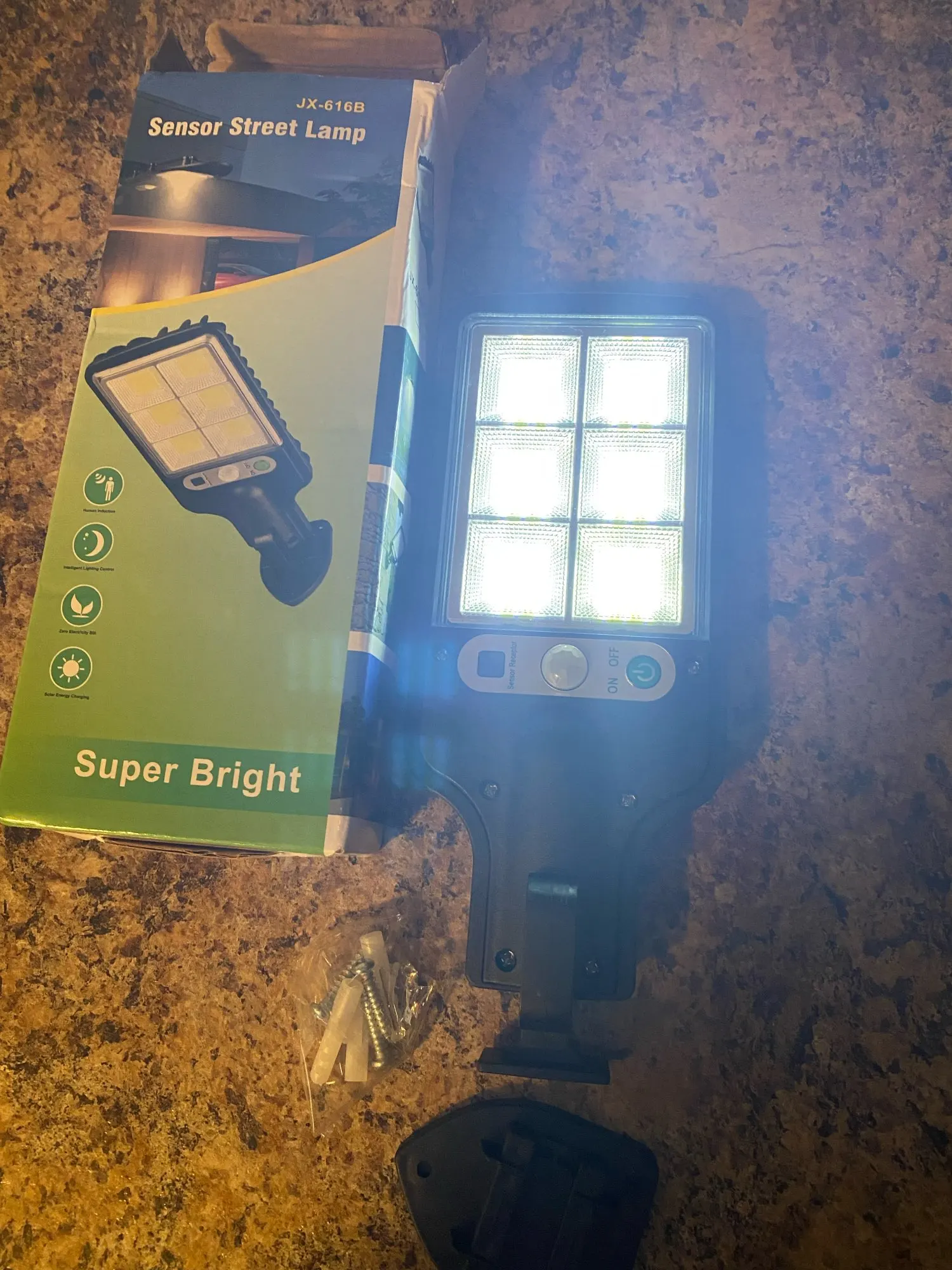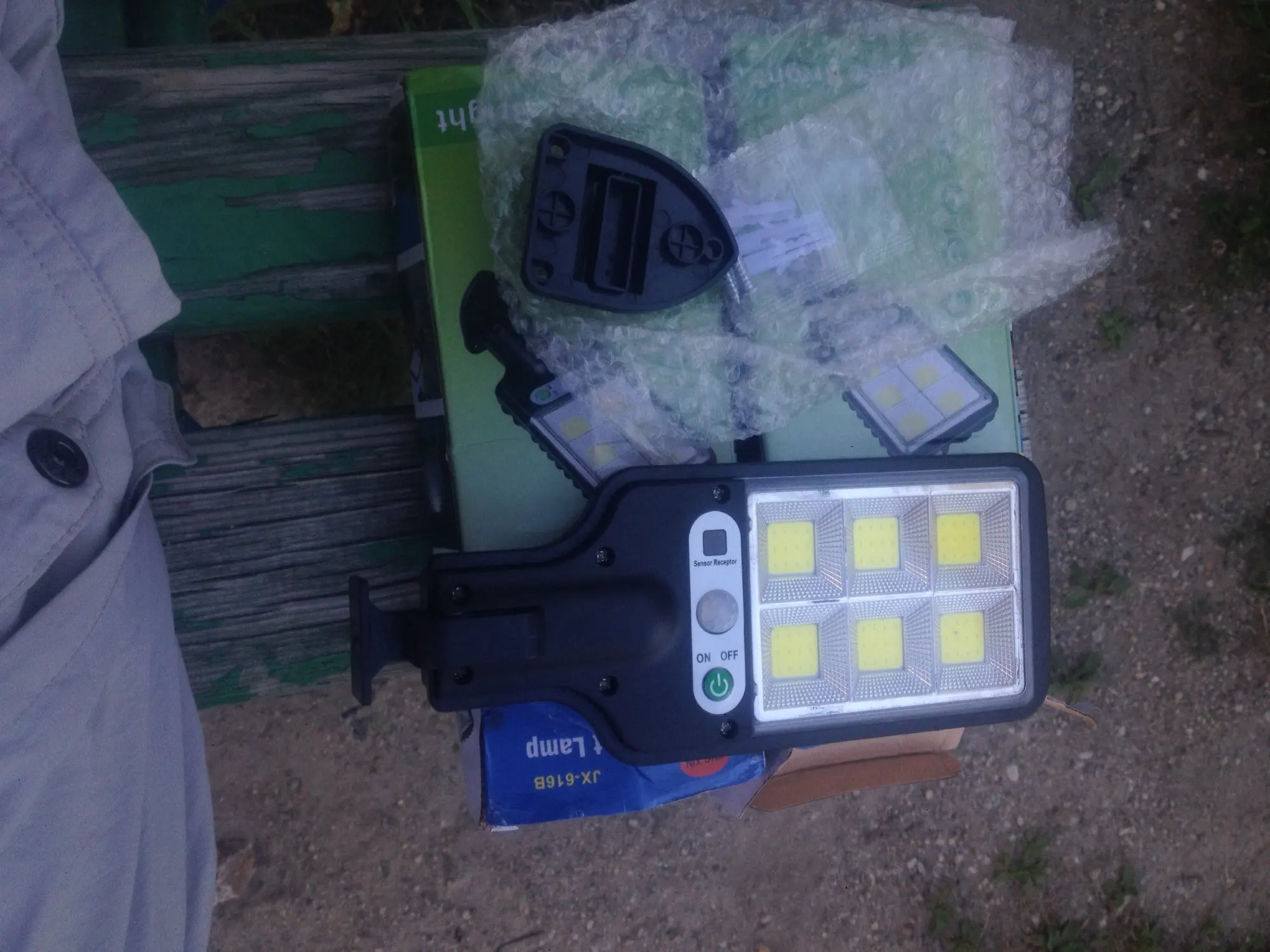 Фонарь крутой. Покупала, чтобы осветить небольшую парковку примерно на 8-10 машин. Отлично освещает всю парковку. Пришёл уже заряженным. Датчик движения реагирует на движение. Фонарь пришёл уже заряженным. Имеются два режима: ярко и тускло. Яркий режим прям супер-яркий. На водонепроницаемость данный девайс ещё не проверяла. Дополню отзыв позже, после того, как установлю фонарь и опробую на водонепроницаемость (надеюсь его не сдует ветром и не зальёт водой, а то в нашей местности бывают офигенные ливни с ветром)