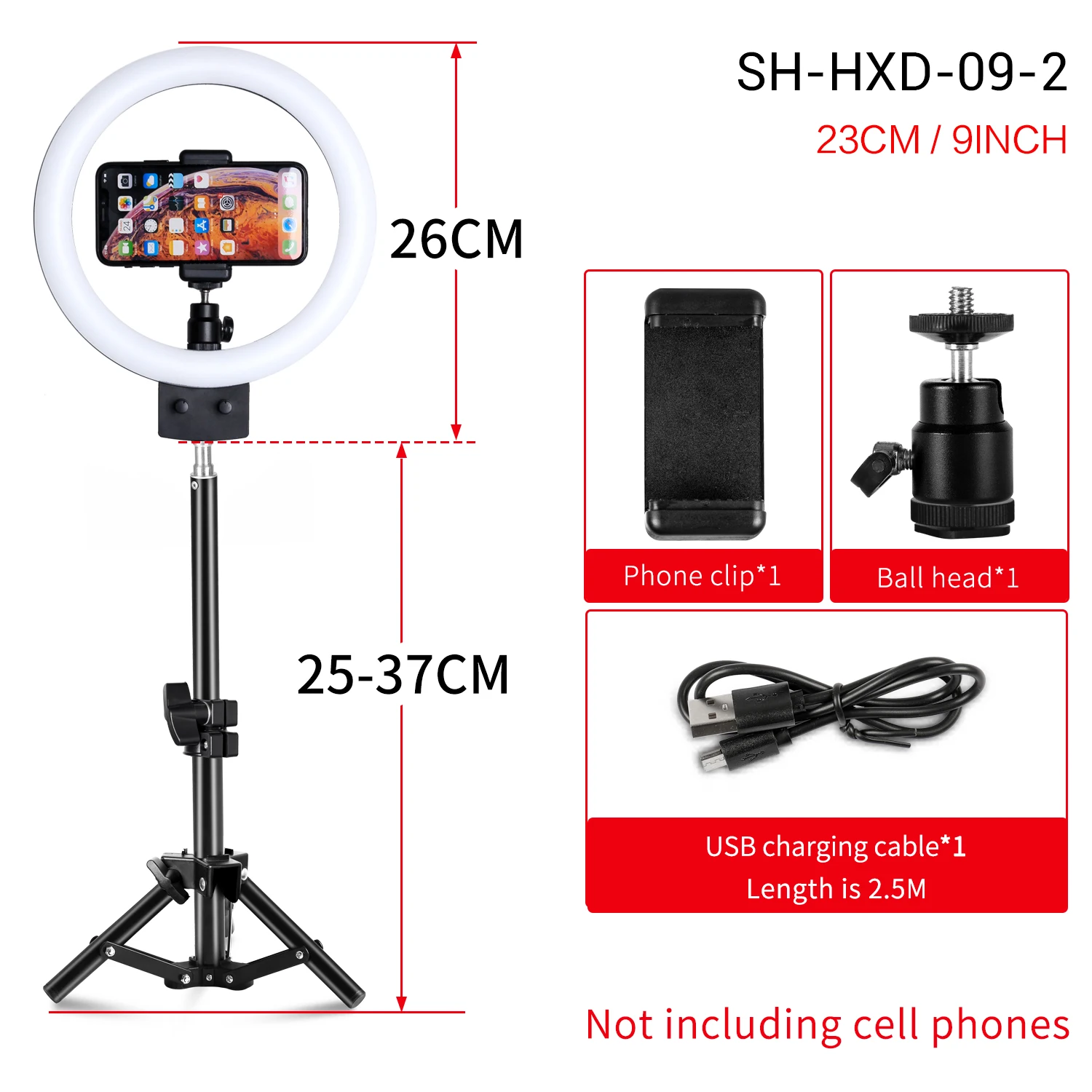 Features 2SH 9inch/23cm Ring Light Usb Selfie Led Video Lamp With Tripod Stand