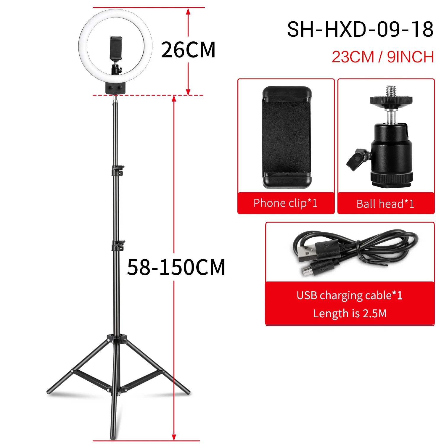 Features 6SH 9inch/23cm Ring Light Selfie Ring Light With Tripod Stand