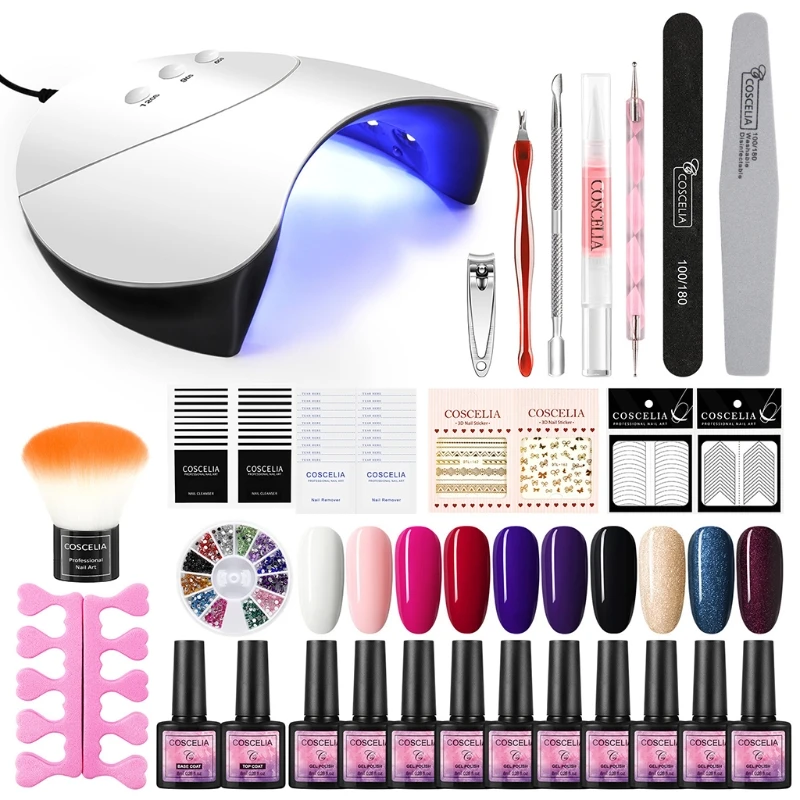 Набор для маникюра COSCELIA с УФ-светодиодной лампой, лампой, верхн...