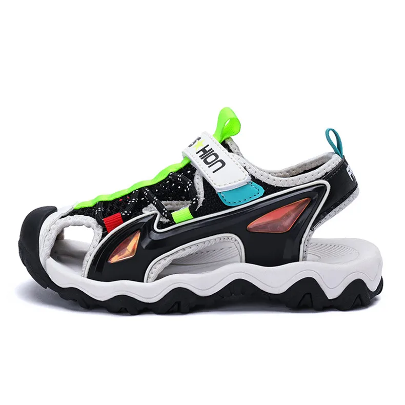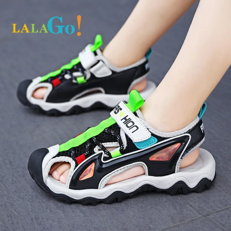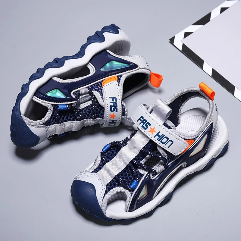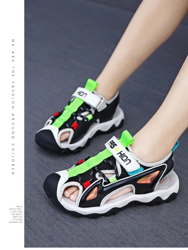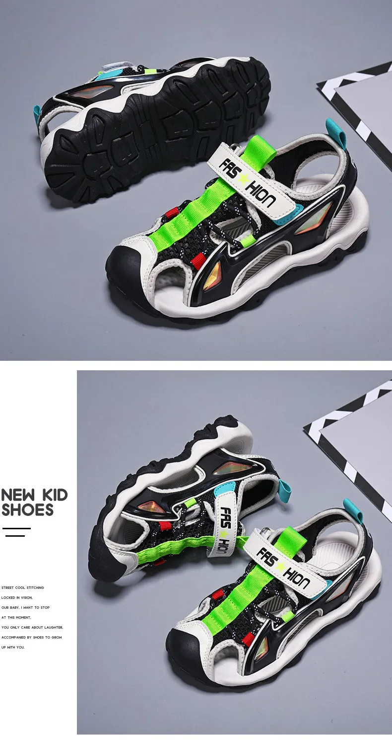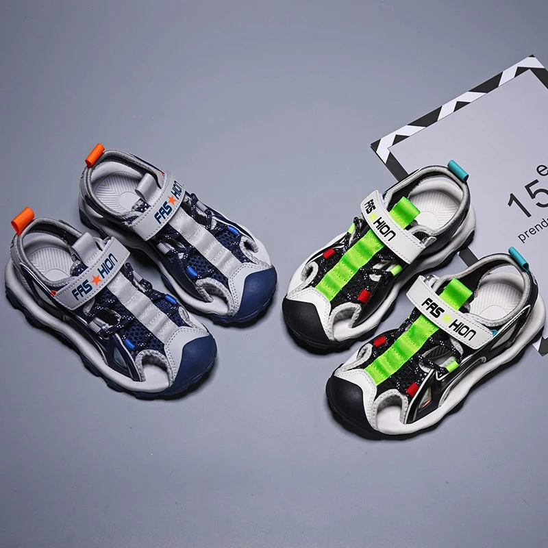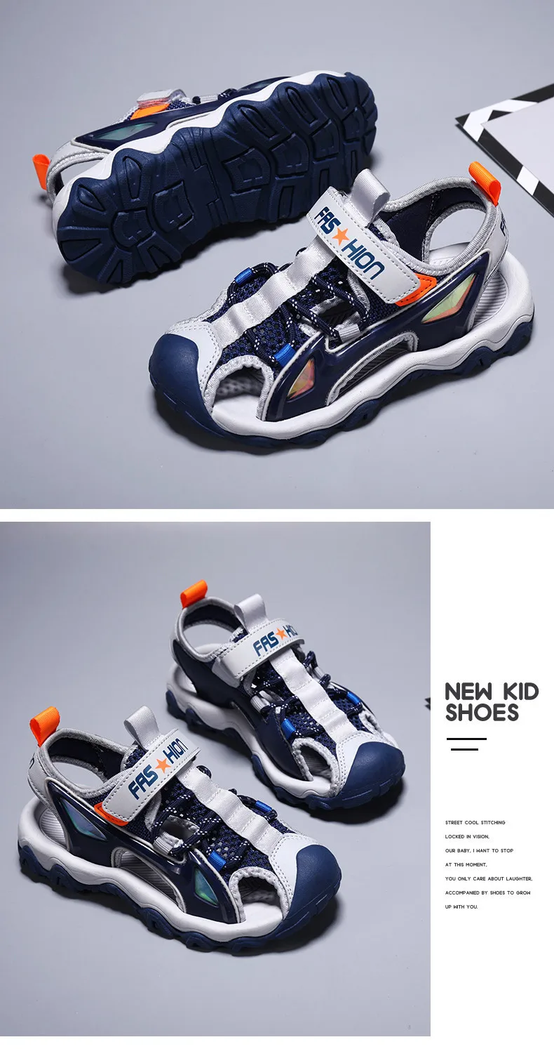 Сандалии Детские с закрытым носком, дышащие Нескользящие, пляжные спортивные тапочки, плоская подошва, летняя обувь, для мальчиков и девочек, 2021