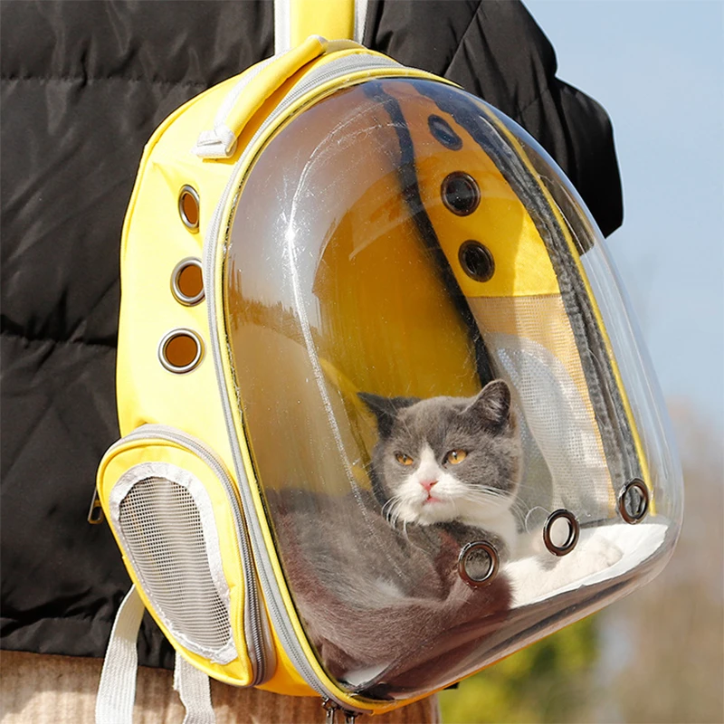 Воздухопроницаемая Сумка-переноска для кошек и маленьких собак, акриловый рюкзак из ткани Оксфорд, для путешествий с космической капсулой, нагрузка 6,5 кг