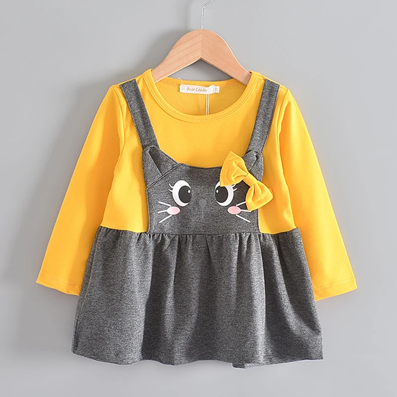 Платье для маленьких девочек 2021 г. Весеннее платье принцессы с длинными рукавами для маленьких девочек, милая одежда в стиле пэчворк с бантом