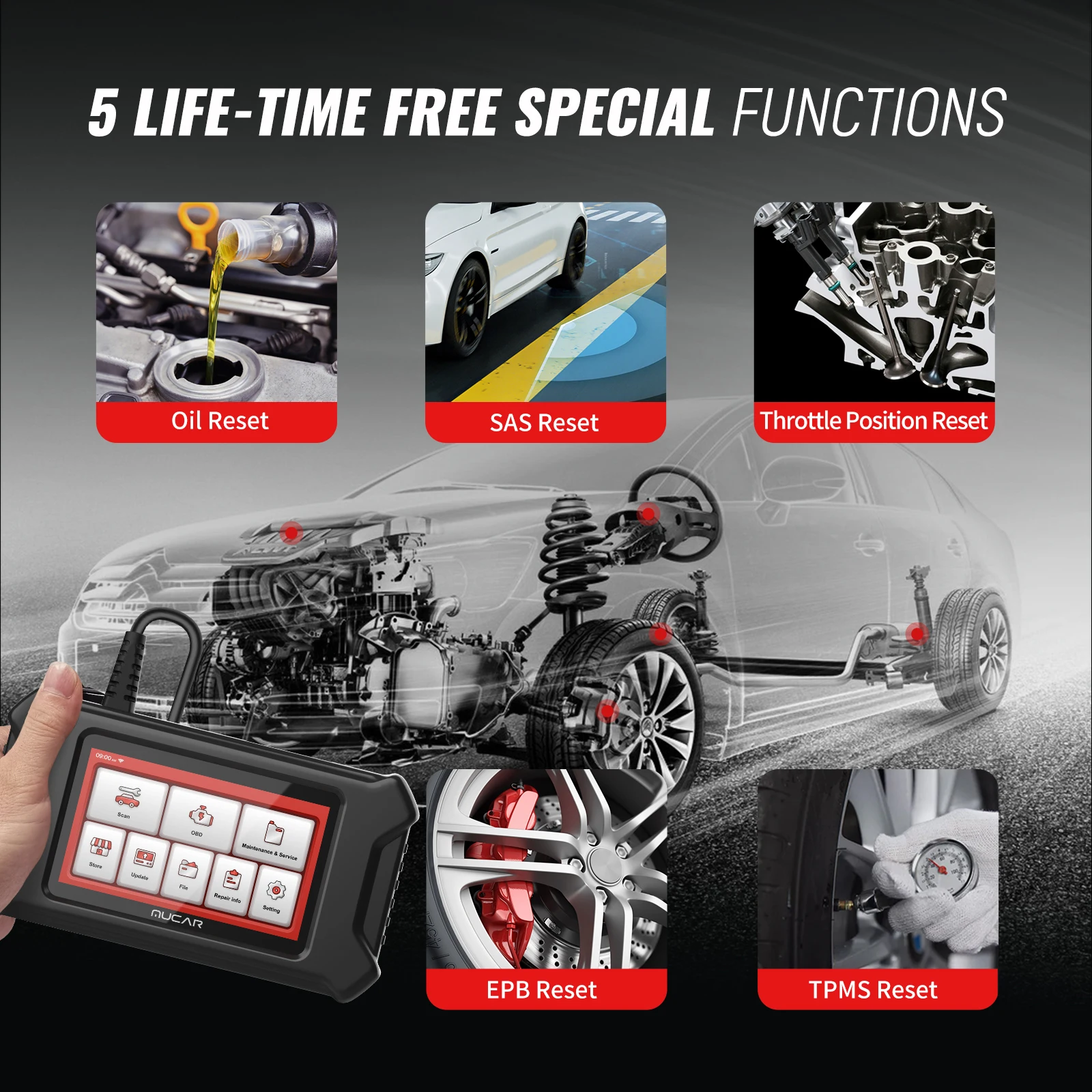 Диагностический сканер MUCAR CS4, Obd2 сканер для автомобиля, система ABSSRSECMTCM, 5 сбросов